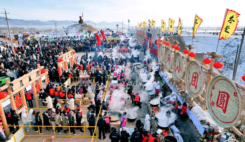冬至阳生,古俗今承;万人同赴,盛宴相酬。12月21日,2025年甘肃省“四季村晚”(张掖)冬季示范展示暨山丹冬至民俗文化活动在清泉镇祁店村温情开幕,同步发布2026年“节气中国・非遗焕新”主题推广活动暨“风起河西宴天下”张掖山丹第四届炒拨拉非遗美食嘉年华活动相关信息。活动现场,数万名群众和游客齐聚一堂,同吃“牛娃子饭”、一起“嗷冬至”,沉浸式观赏民俗演艺、体验非遗文创、品鉴特色美食,在热闹祥和的氛围中尽享民俗乐趣,感受传统民俗文化的深厚魅力。