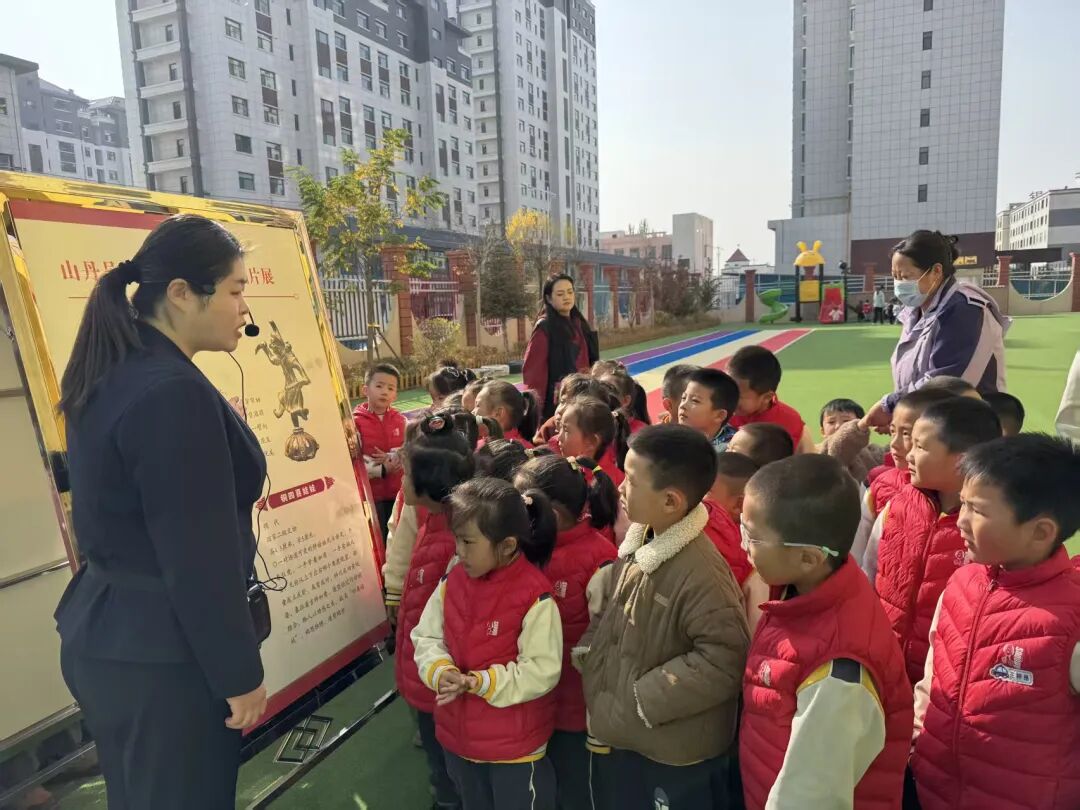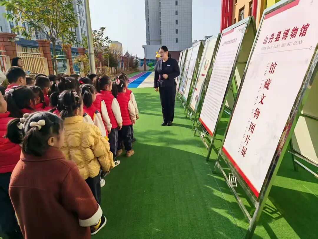 从认识苗银文化,到亲手完成一件可带走的作品,孩子们不仅触摸到了传统技艺的温度,更学会用双手创造美,让“非遗”不再是课本里的名词,而是能渗透在三餐四季里,带着生手工活动结束后,社教老师带领孩子们参观了山丹县博物馆馆藏精品文物展板。这些原本藏在博物馆里的青铜器、彩绘陶俑、古书画等悄悄走进了校园。一群“小时光侦探”正踮着脚尖、睁大眼睛探寻着文物里的故事。