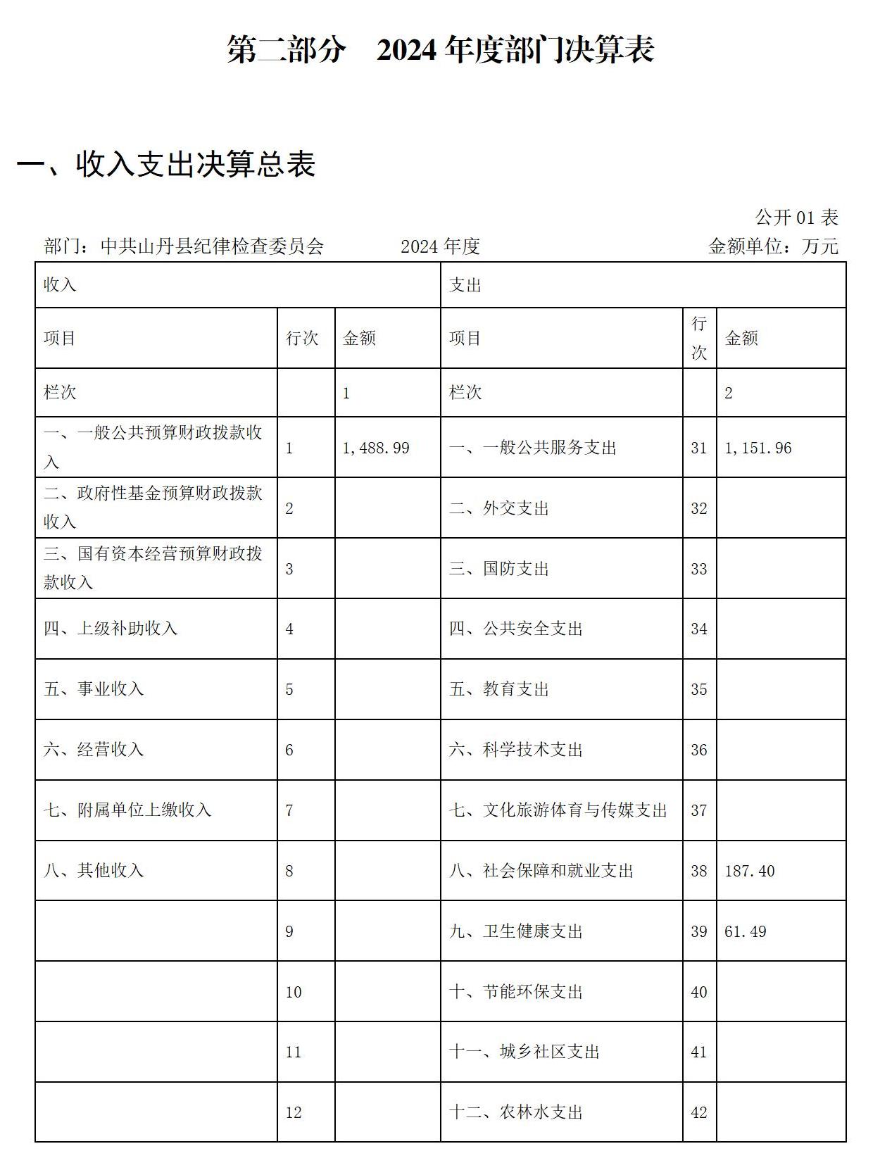 第二部分 2024年度部门决算表