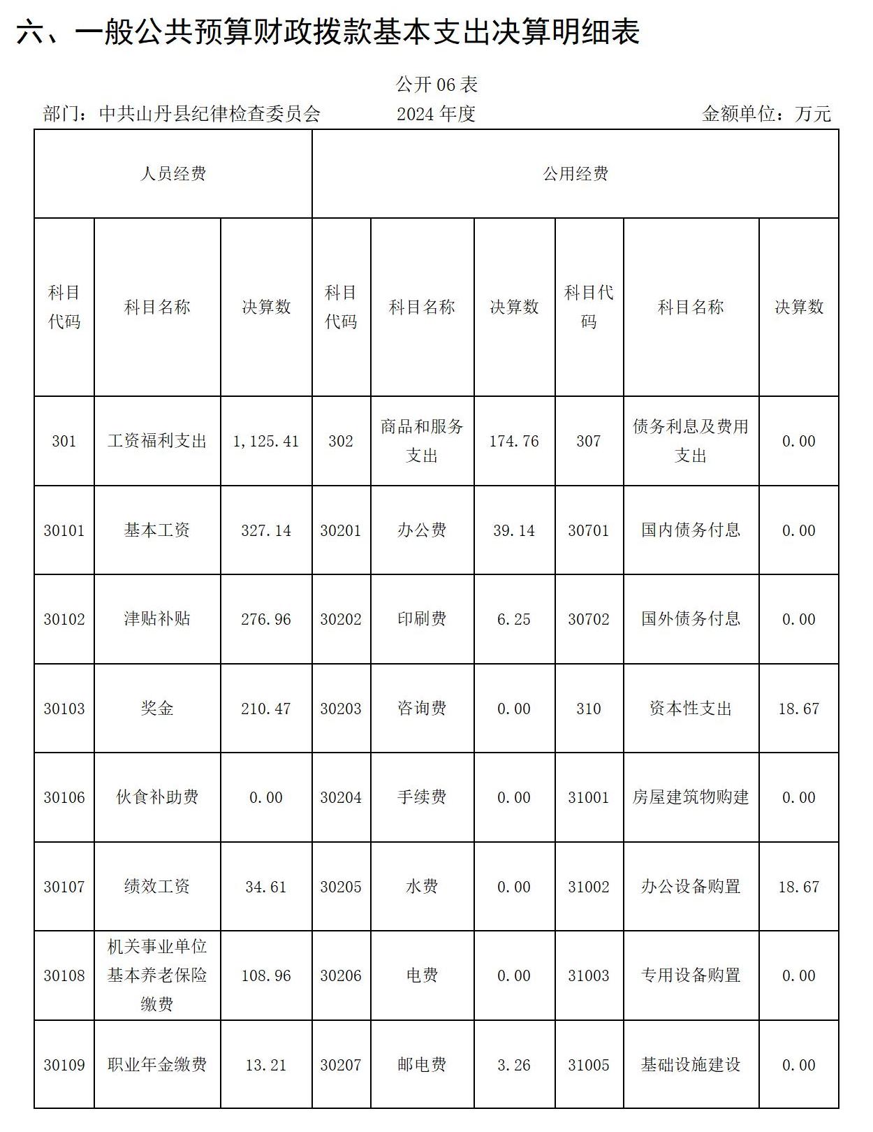 六、一般公共预算财政拨款基本支出决算明细表