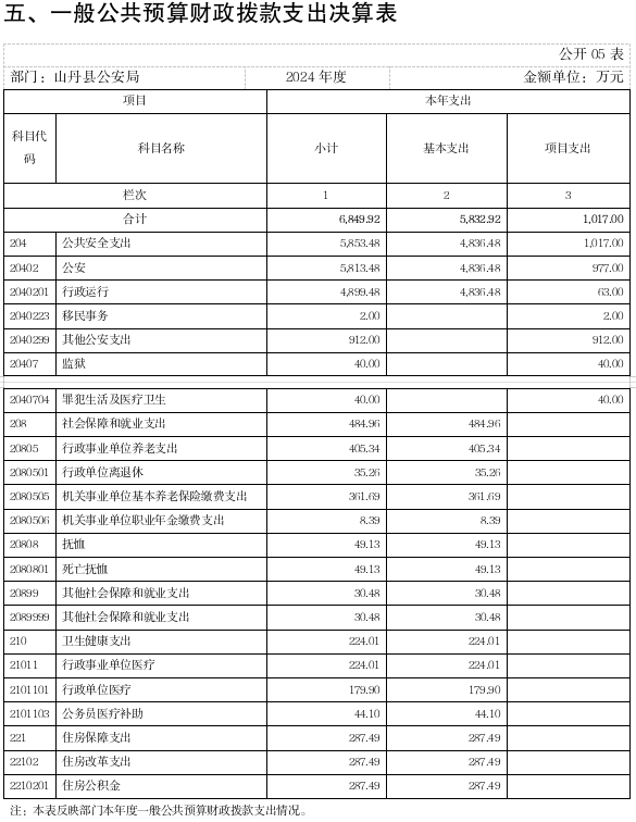 十四、公共安全支出(类)公安(款)行政运行(项):反映行政单位(包括实行公务员管理的事业单位)的基本支出。