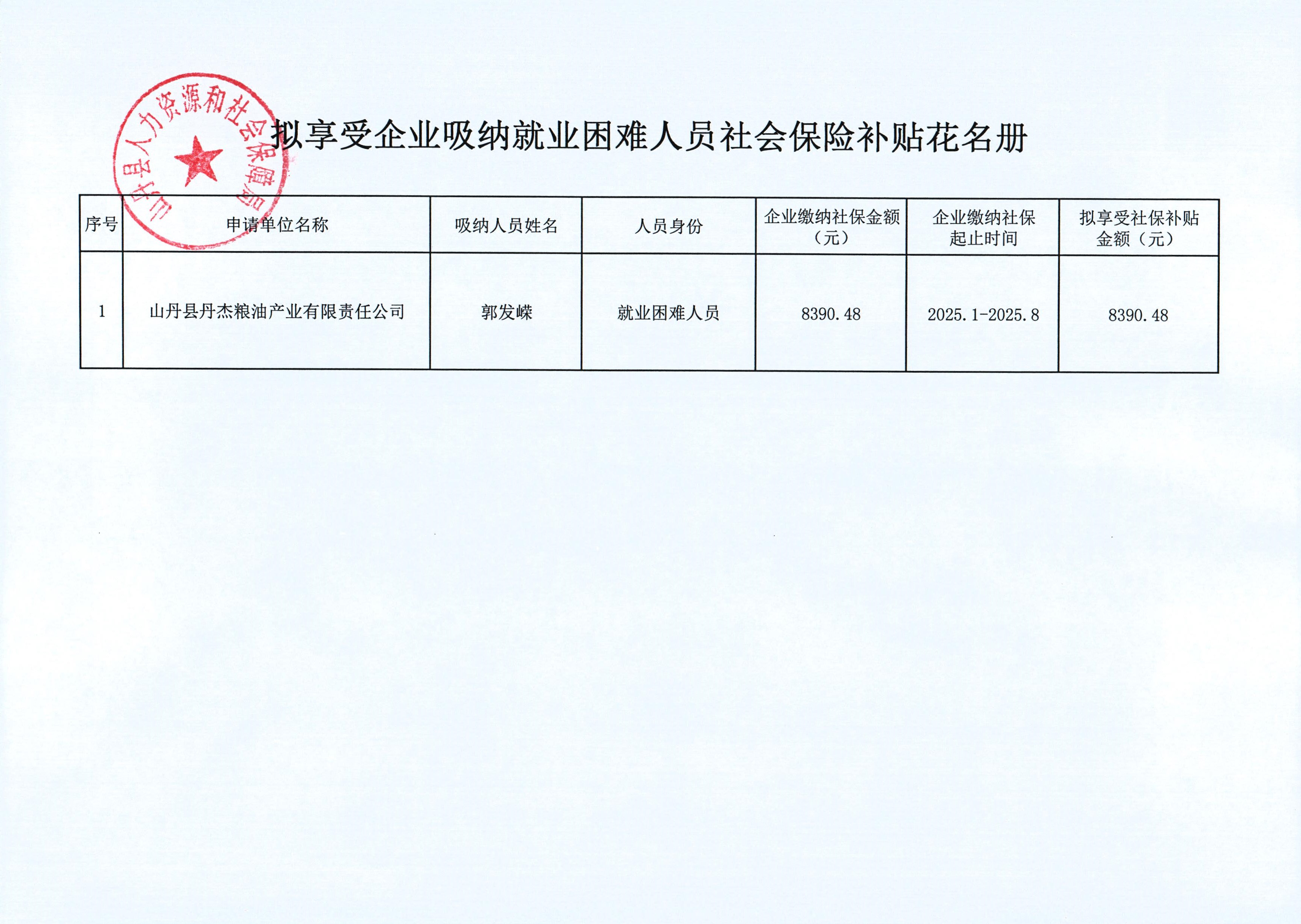 关于山丹县2025年拟享受企业吸纳就业困难人员社保补贴的公示