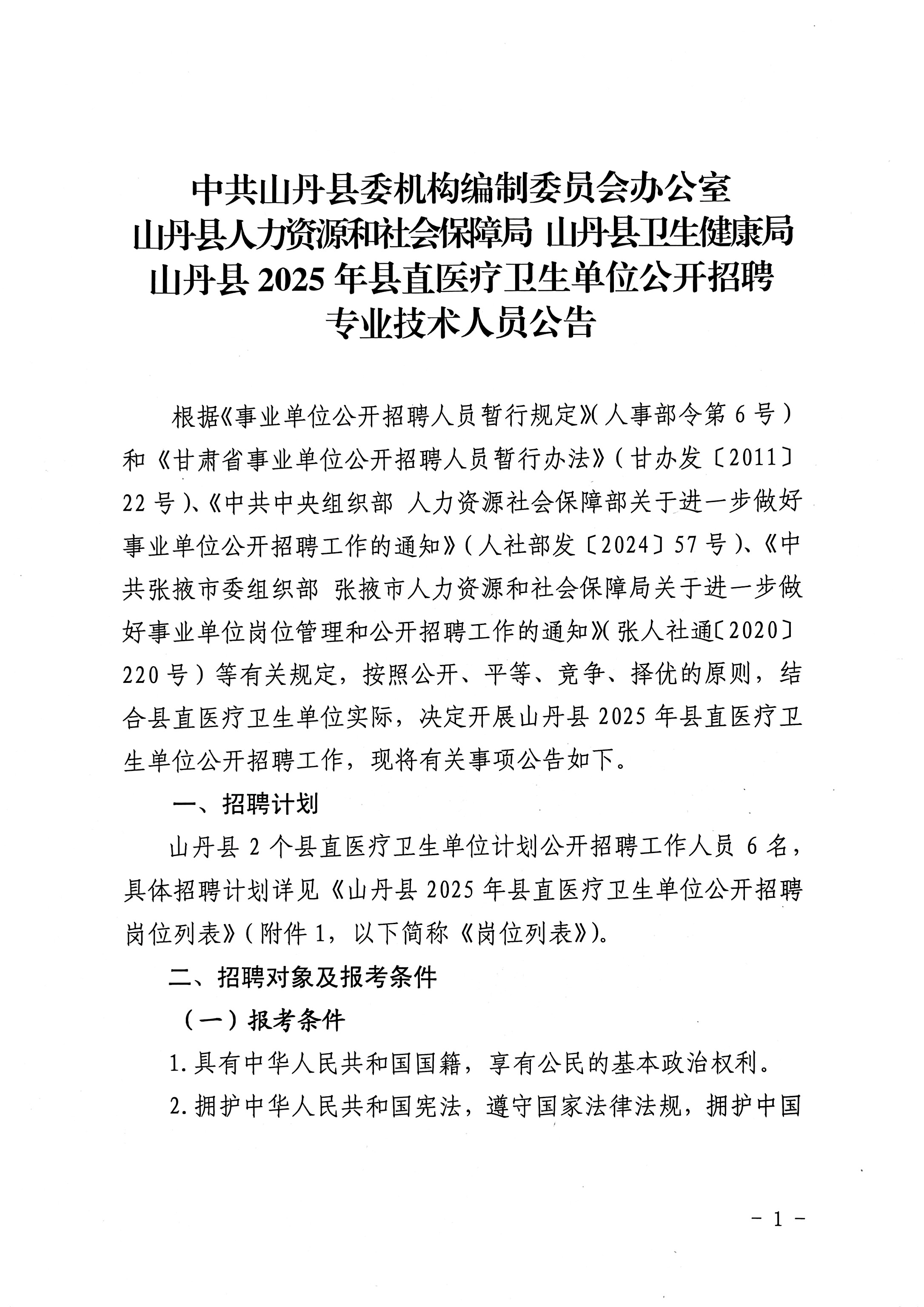 山丹县2025年县直医疗卫生单位公开招聘专业技术人员公告