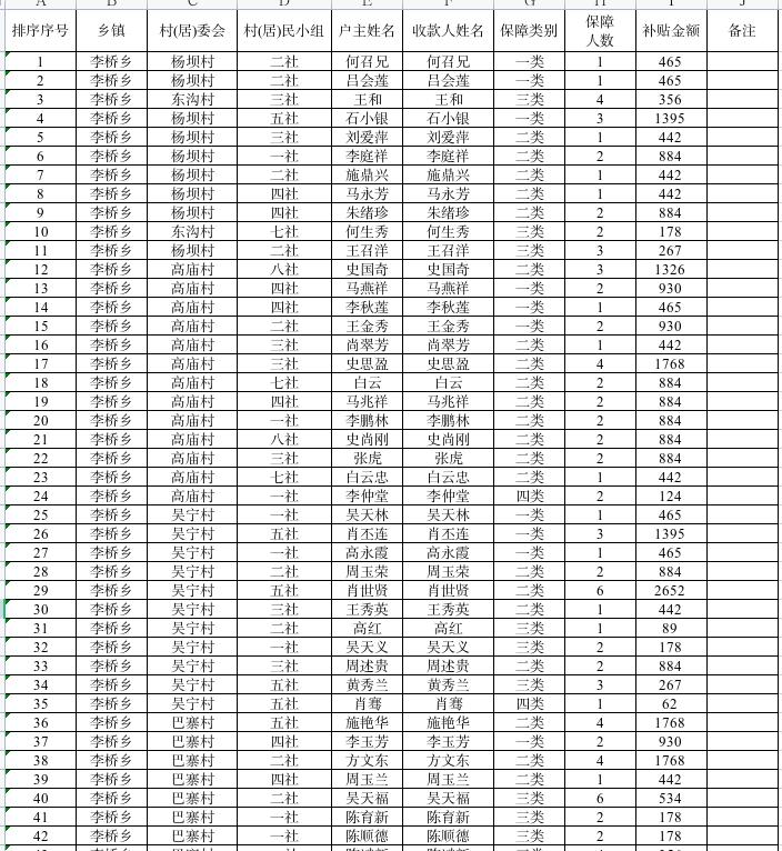 山丹县2025年9月农村居民最低生活保障发放花名册