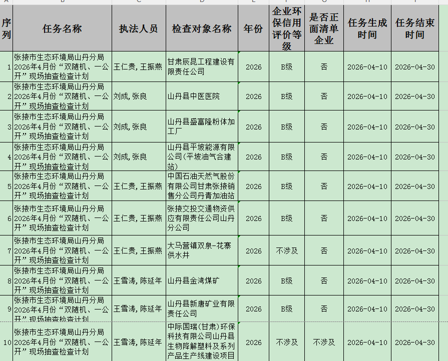 张掖市生态环境局山丹分局