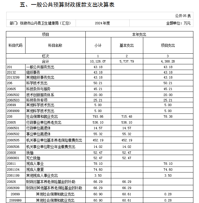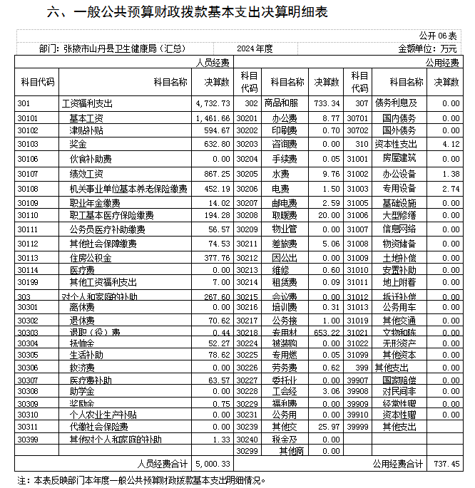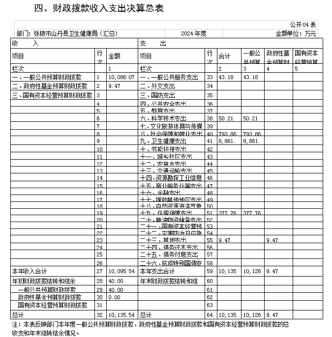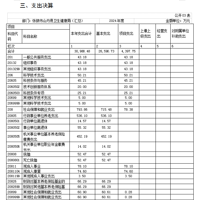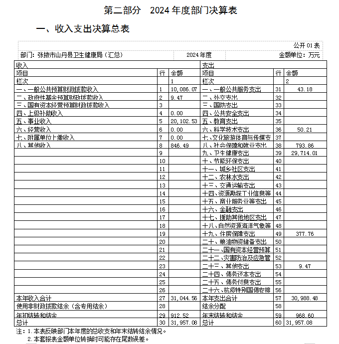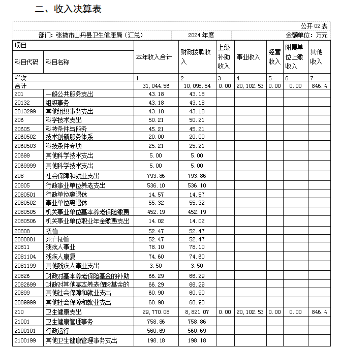 山丹县卫生健康局(汇总)2024年度部门决算公开情况说明