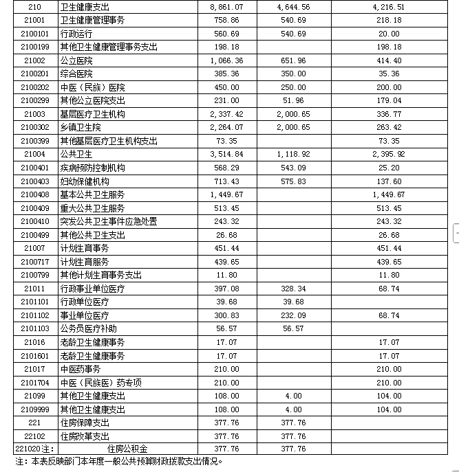 四十九、卫生健康支出(类)公共卫生(款)疾病预防控制机构(项):反映卫生健康、疾病预防控制部门所属疾病预防控制机构支出。