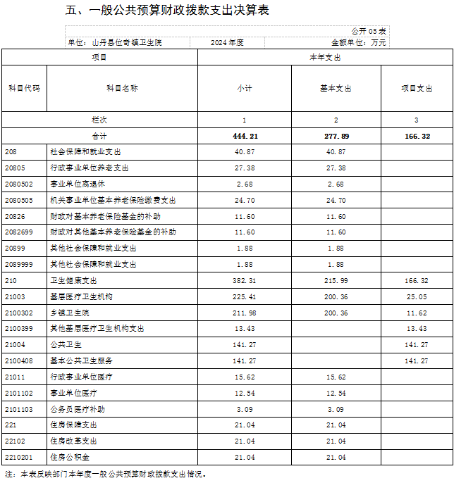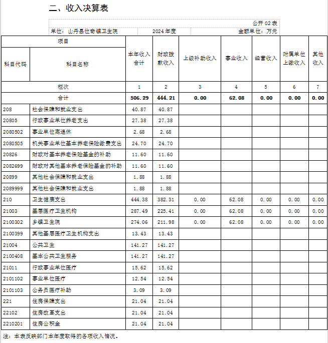 山丹县位奇镇卫生院2024年度部门决算公开情况说明