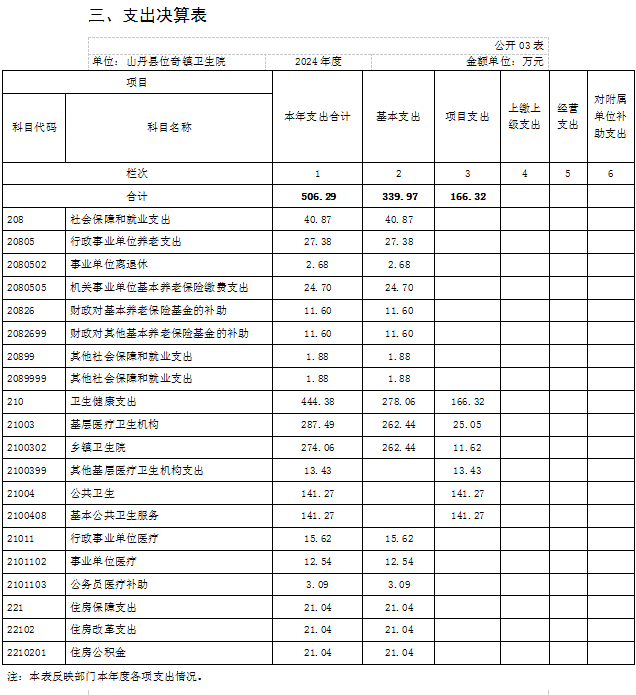 2024年度支出合计506.29万元,其中:基本支出339.97万元,占67.15%;项目支出166.32万元,占32.85%。