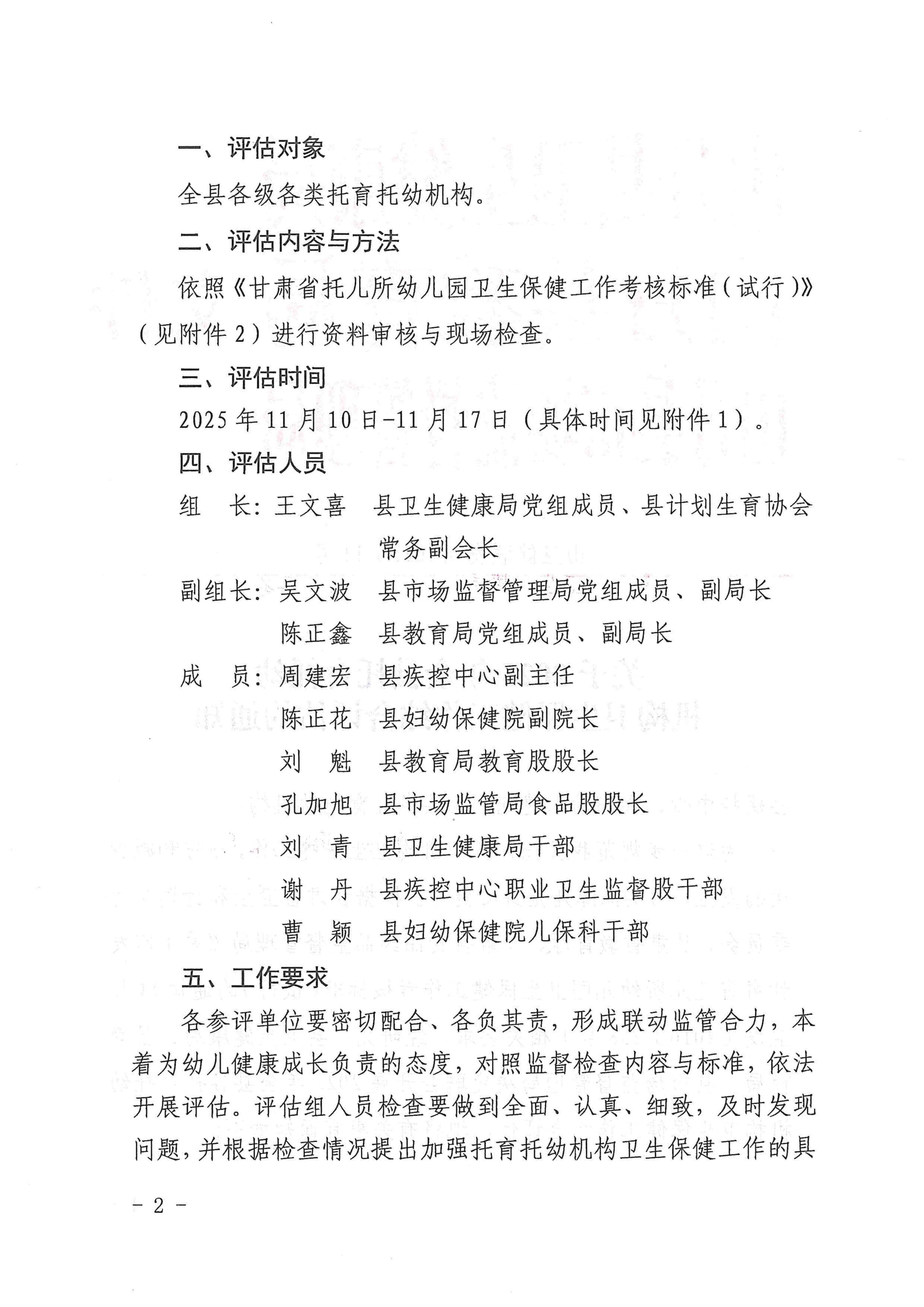 关于2025年全县托育托幼机构卫生保健工作综合评估的通知