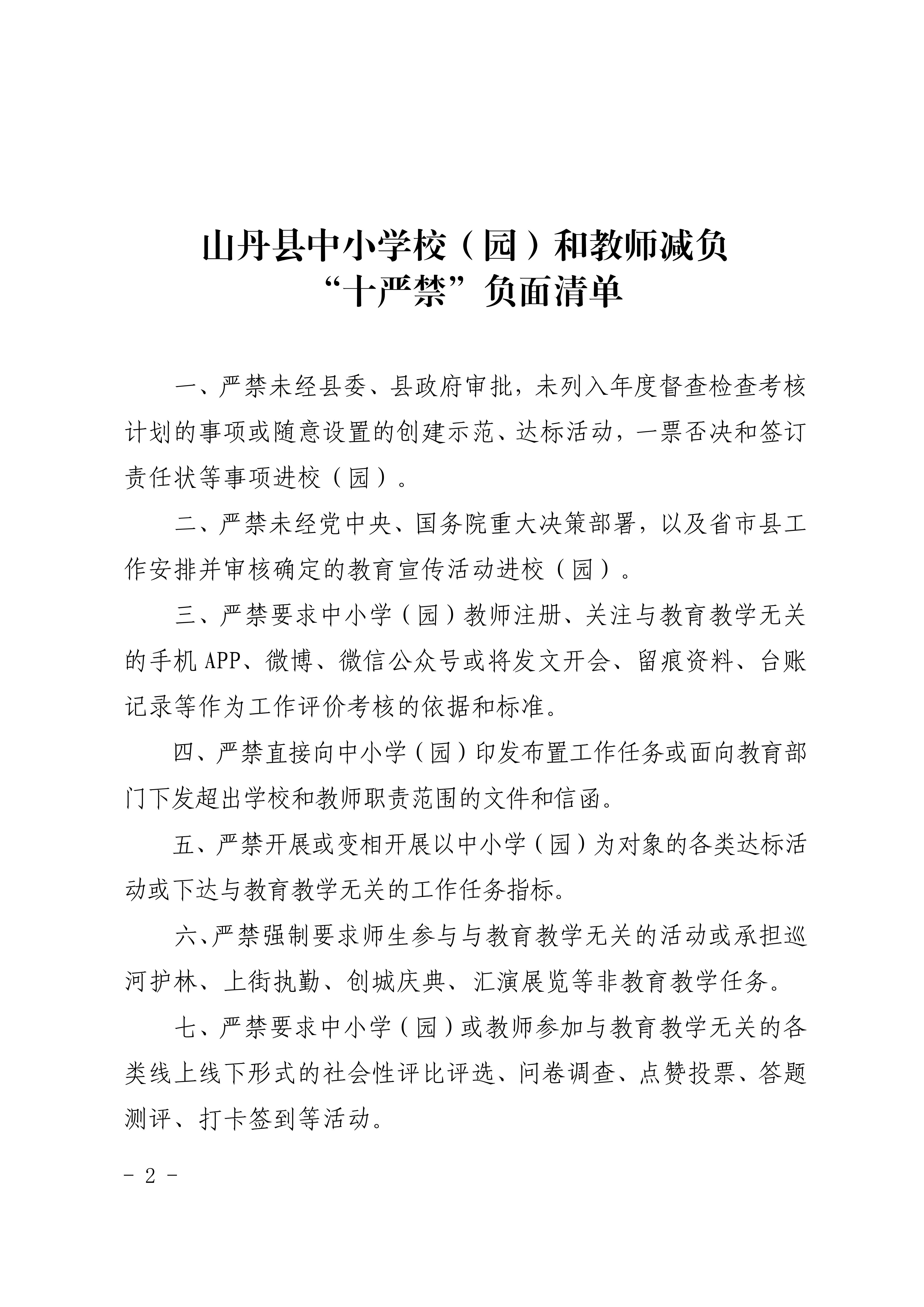 共山丹县委办公室 山丹县人民政府办公室关于印发山丹县中小学校(园)和教师减负“十严禁”负面清单的通知