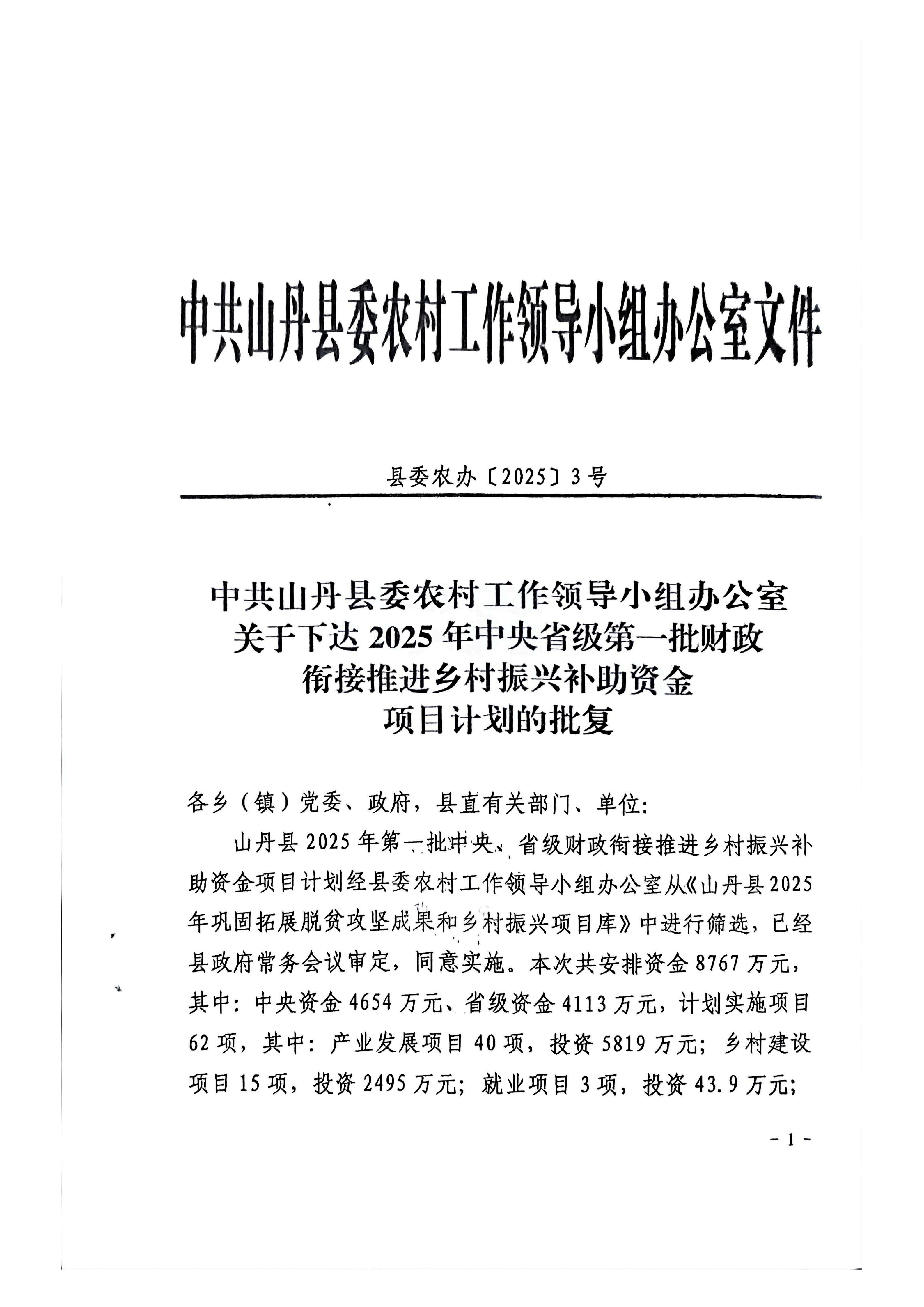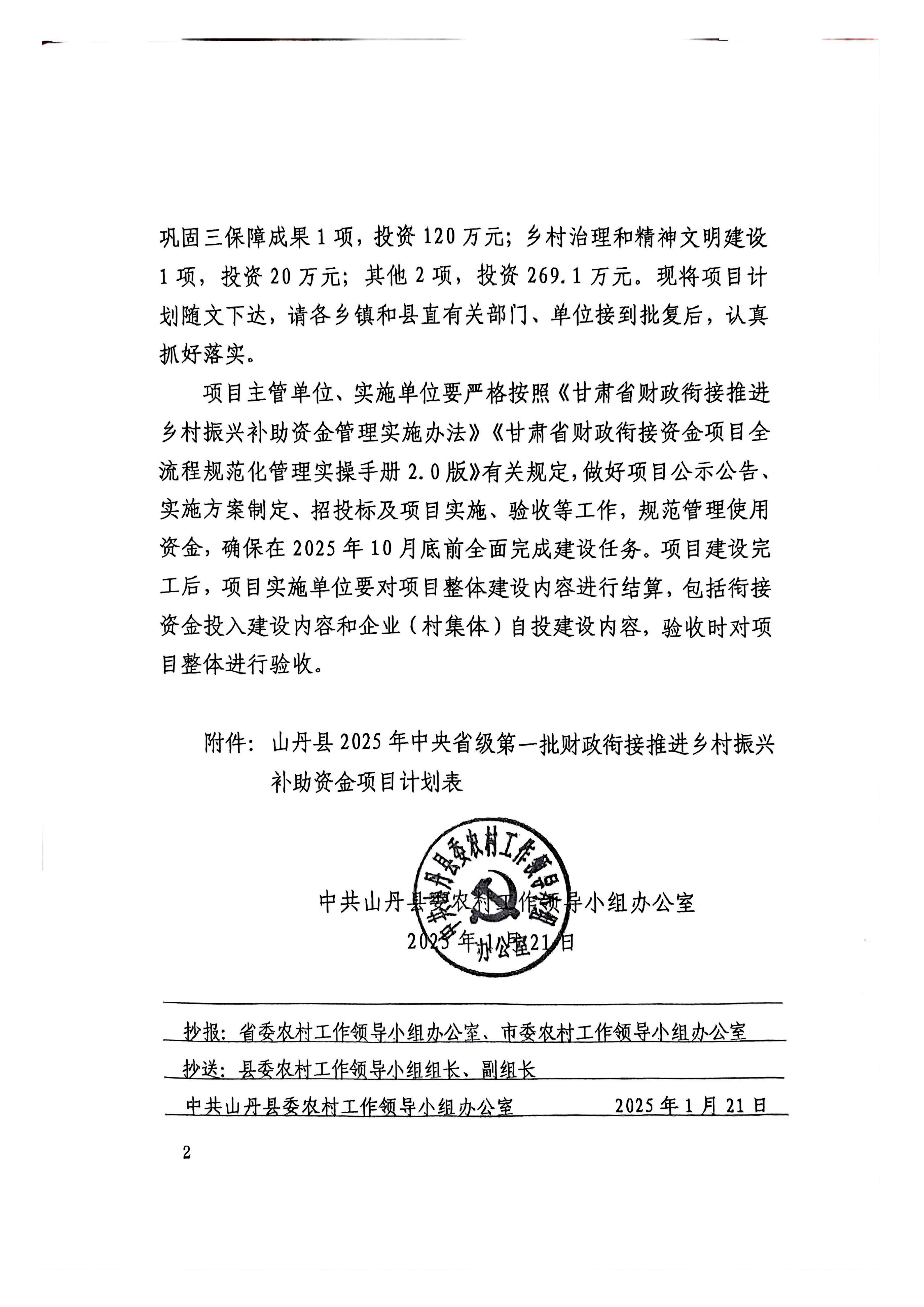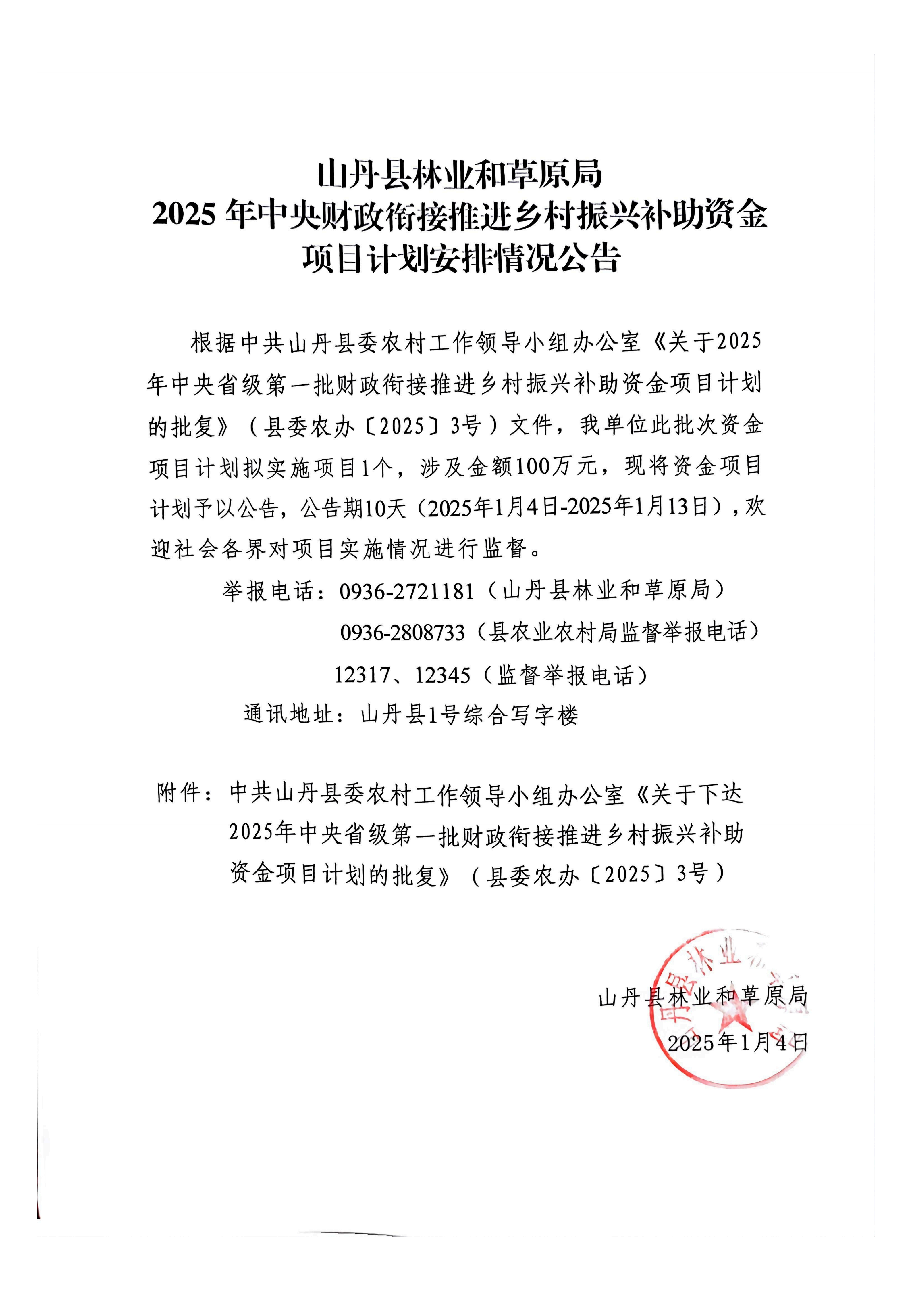 山丹县林业和草原局2025年中央财政衔接推进乡村振兴补助资金项目计划安排情况公告