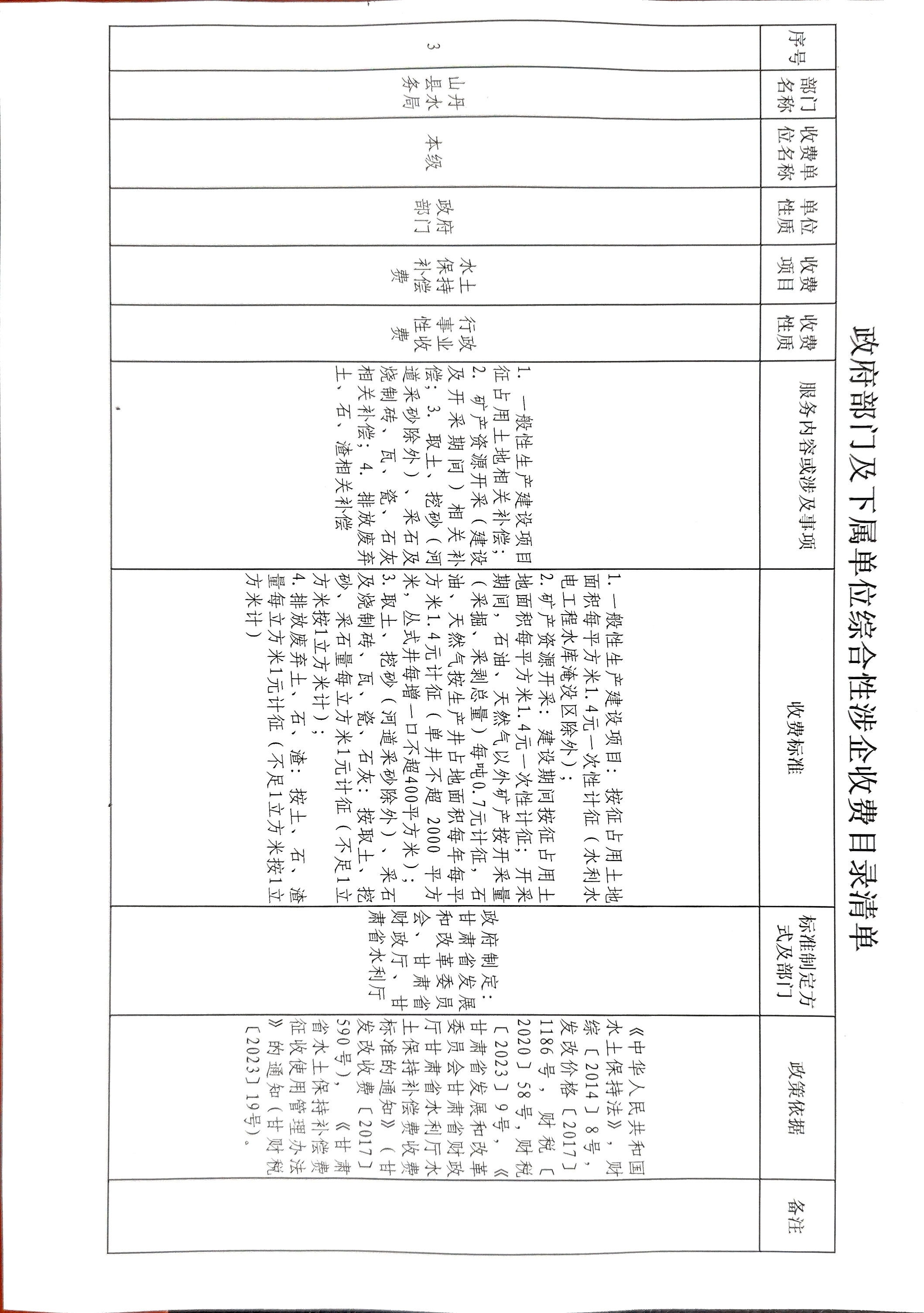 政府部门及下属单位综合性涉企收费目录清单