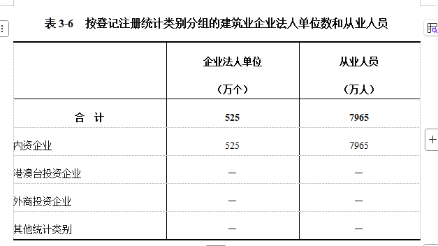建筑业企业法人单位从业人员中,内资企业7965人,占100%(详见表3-6)。