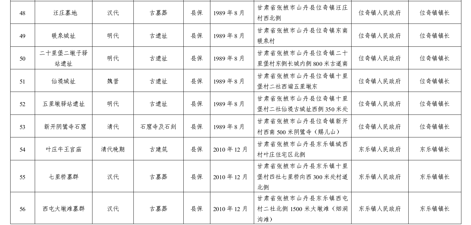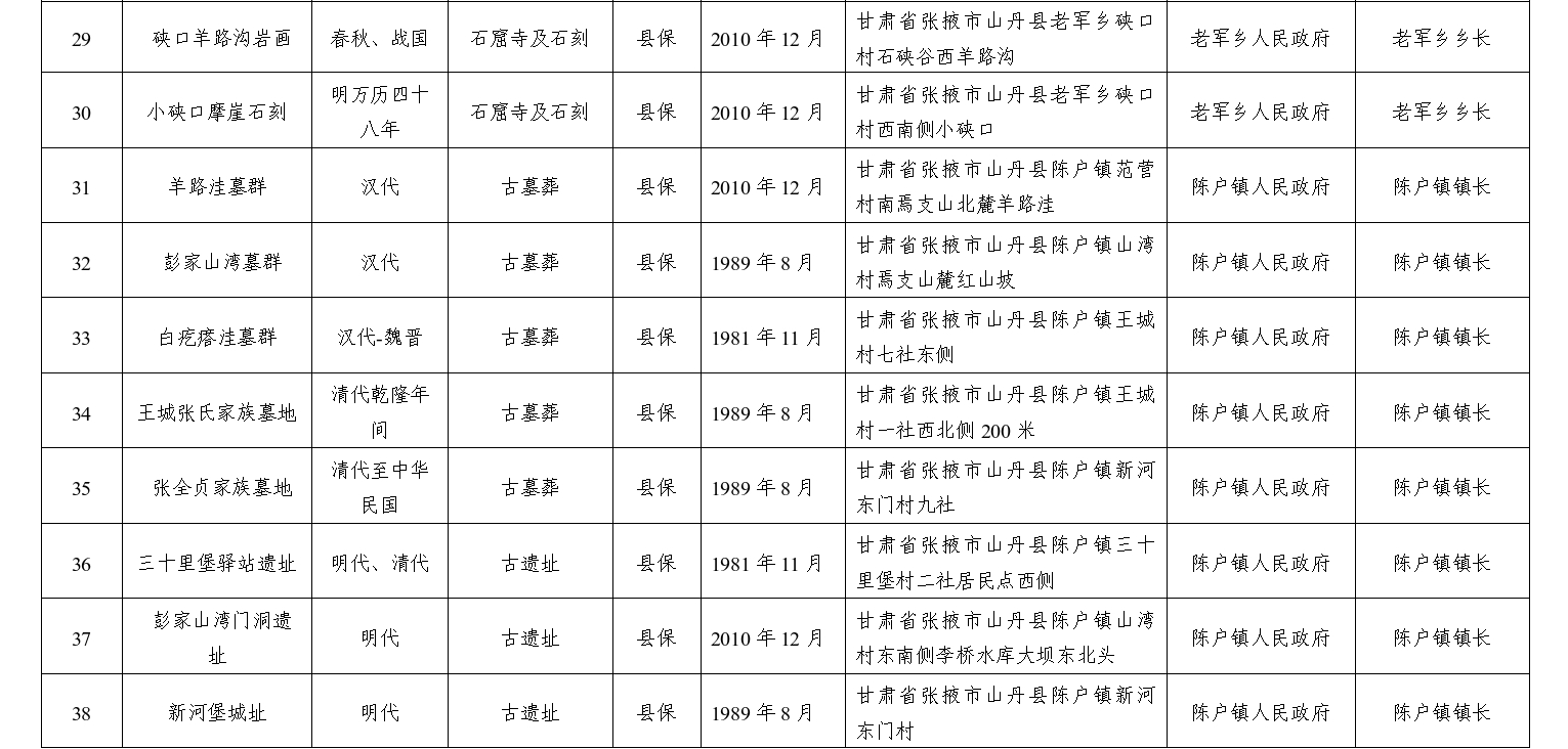 3.山丹县一般文物保护单位安全管理直接责任单位明细表
