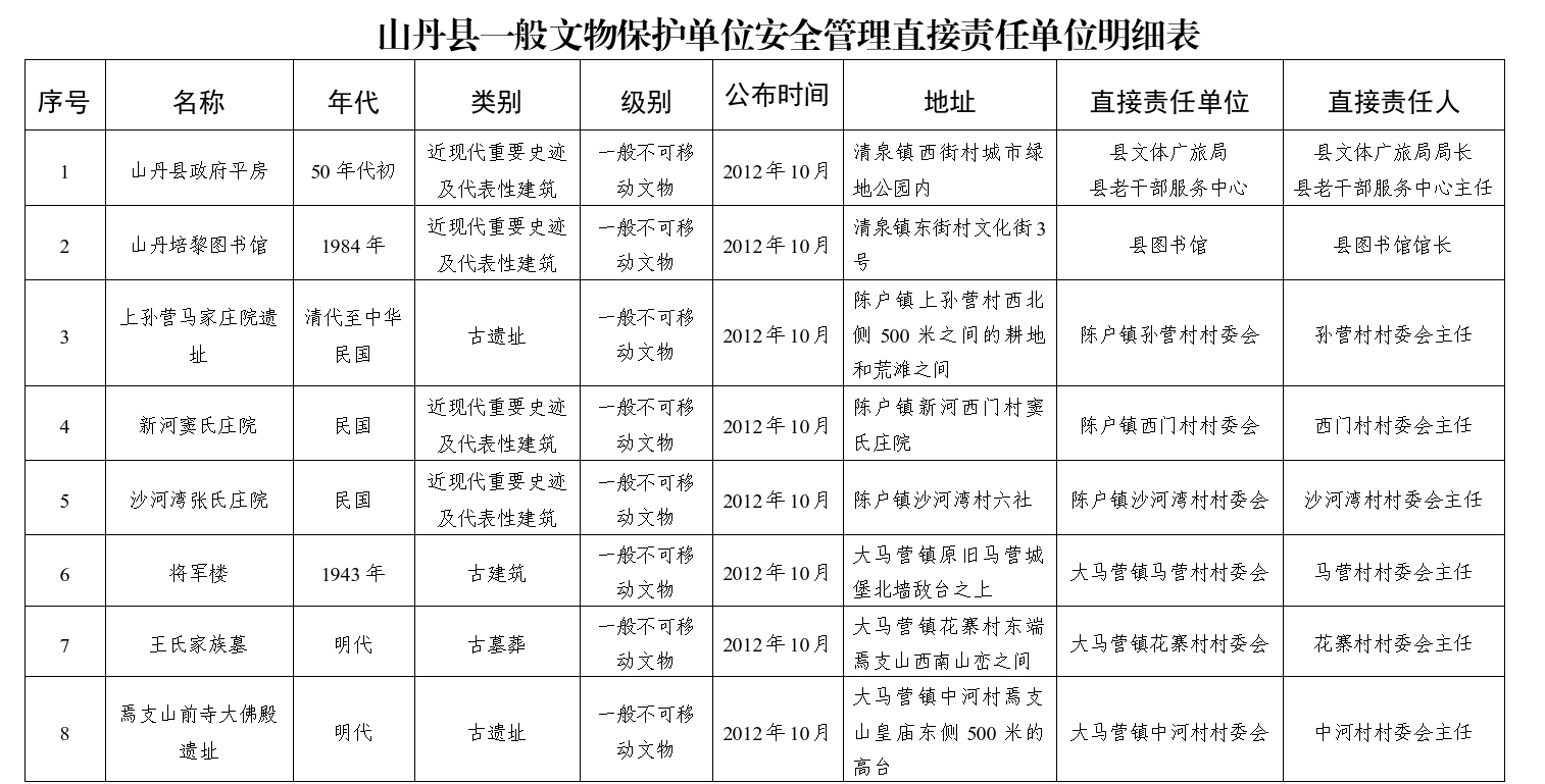 附件:1.山丹县全国重点文物保护单位、省级文物保护单位安全管理直接责任单位明细表