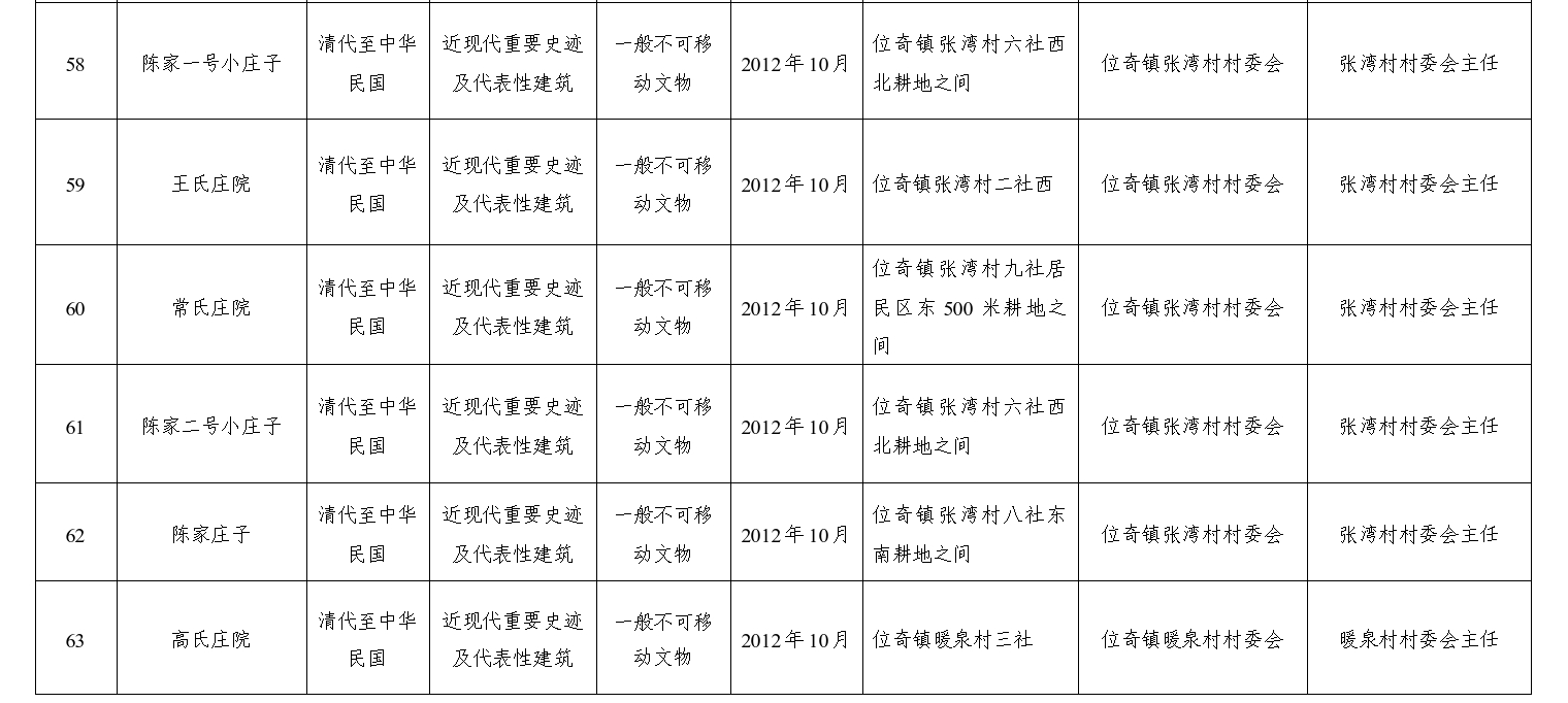 备注:县级文物保护单位所在乡镇、管理使用单位对县级文物保护单位负直接保护责任,各乡镇乡镇长、管理使用单位主要负责人为第一责任人。