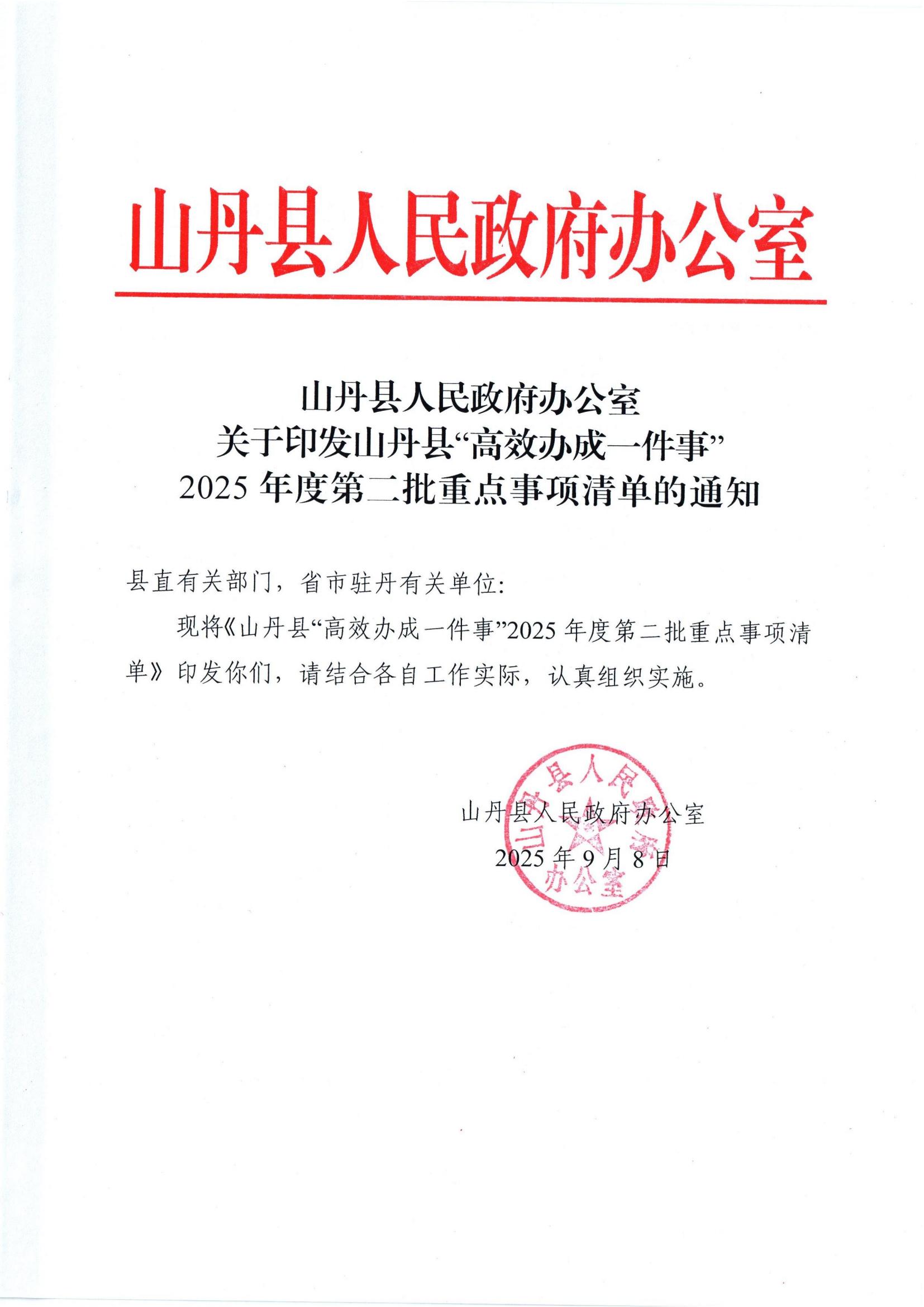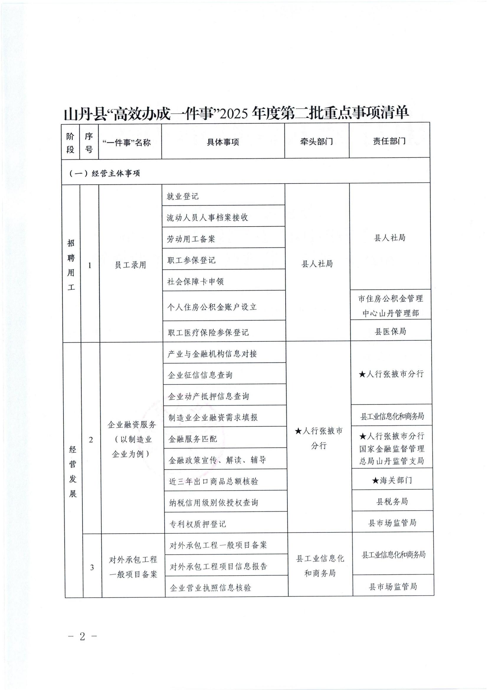 山丹县人民政府办公室关于印发山丹县“高效办成一件事”2025年度第二批重点事项清单的通知