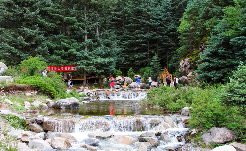 焉支山自然风光秀美,山上林海松涛,碧波无际,山下沟壑纵横,清泉淙淙,峡谷两侧崇山峭立,奇石岩岩,素有“小黄山”之称。顶峰百花池海拔3976.8米。山体为南北走向,山顶终年积雪,山腰间草茂花繁,松柏常青。每年夏天,山上遍布着迎春花、山丹花、野玫瑰、金露梅、鞭麻花等野花。山中还盛产大黄、黄芪、沙参、秦韭及十分名贵的红、白雪莲等药材,獐鹿、岩羊等野生动物出没期间。山顶上的百花池绿树环绕、碧水涟涟、雪峰倒影,景色美丽喜人,是消夏避暑、度假旅游的自然风光旅游胜地。