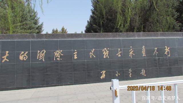中间是甘肃省政府矗立的大理石碑一座,上面镌刻着路易•艾黎和他的好友乔治•何克的生平简介。他生于1915年,逝世于1945年,是英国人。曾在中国生活、工作近7年。他同情和支持中国的进步事业,与路易•艾黎一起创办了培黎工艺学校。1945年7月,在学校任教期间不幸以身殉职,年仅30岁,为纪念好友,艾黎将何克葬于山丹河北岸,培校校办工厂院内。1979年重建何克陵墓,1985年省政府又拨款重修何克陵园。1987年12月,艾黎逝世后,骨灰于1988年4月安放在何克陵园内,所以又更名为“艾黎与何克陵园”。园内苍松翠柏,郁郁葱葱,庄严肃穆。