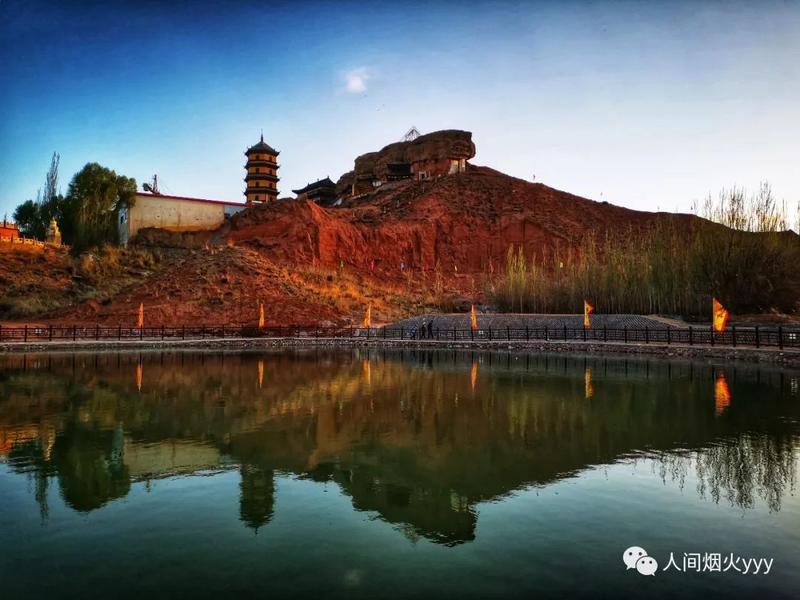 阴骘寺据说建于元代,有僧人云游至此,看到此山“色如渥丹,灿若明霞”,一片佛光普照,随留在这里化缘建寺。当时河西走廊藏传佛教盛行,各地都是广建寺院。如今寺内还保留两座古老的藏式佛塔。藏式佛塔独立于一座崖坡上,石崖酷似一头大象,佛塔驮立在像背上,直指云天。据钱积成老人说,上世纪五十年代,他常到寺院玩耍,还见到驻寺的红衣喇嘛,所念经文也是藏文。有关寺院建立的文字最早是在明洪武年间,万历年间的修缮也有记录。清同治时寺院实货被毁。