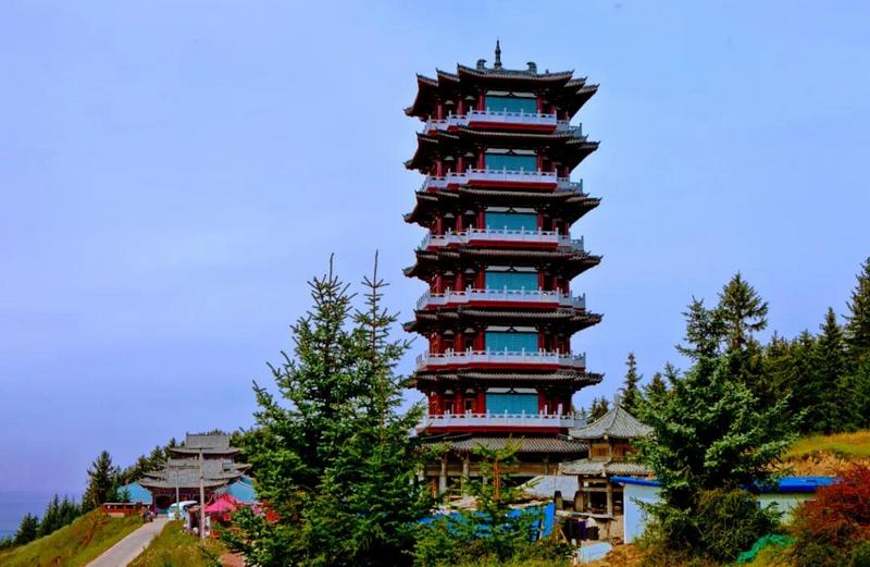 万佛塔是一座具有隋唐风格的殿塔式建筑。大殿彩绘斗拱,巍峨高耸。通高49米,塔基四方八角,重楼七层,设计精巧,气势恢宏。登塔观景,林海松涛,云蒸霞蔚,山峦起伏,沟壑纵横,焉支美景尽收眼底。殿、塔内有各方贤达、善信捐助供奉的功德佛像万尊,故名。