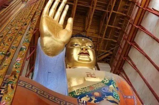 大雄宝殿内供奉的释迦牟尼坐像高35米,是全国最大的室内泥胎坐佛。大佛全身金锱彩绘,面部及手、足、胸部皆为贴金,造型逼真,气度非凡,被海内外佛教界誉为“天下第一佛”。钟鼓声鸣,大佛静坐。日升日落,每个膜拜者各怀心事前去,释然心结而归。