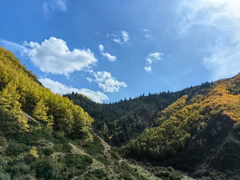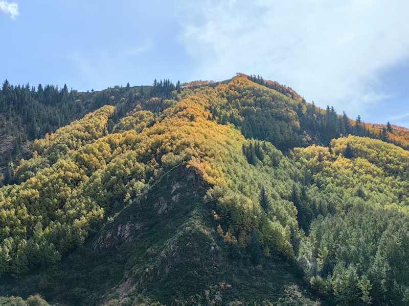 秋风吹过,焉支山的原始森林悄然换装。黄绿交织,红金点染,仿佛大自然执笔挥洒的油画,静谧而热烈。