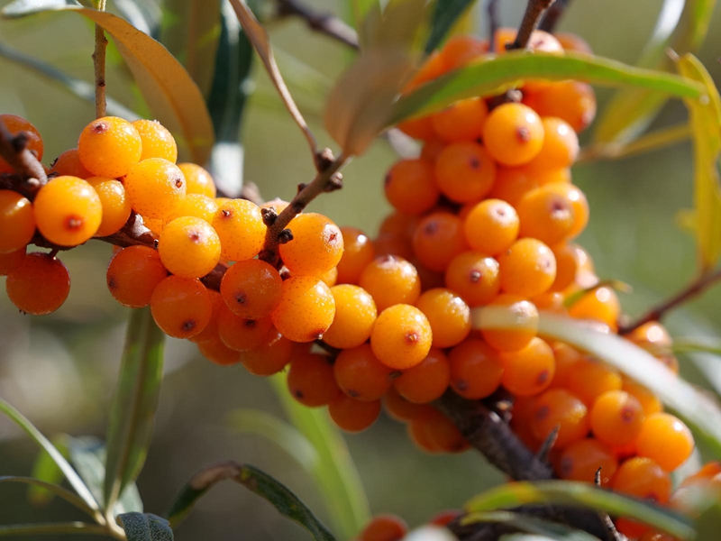 秋天,焉支山火红的沙棘果点缀于绿意之中,像是散落在山野的宝石,点亮了整个山谷。