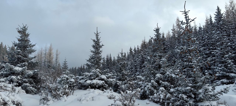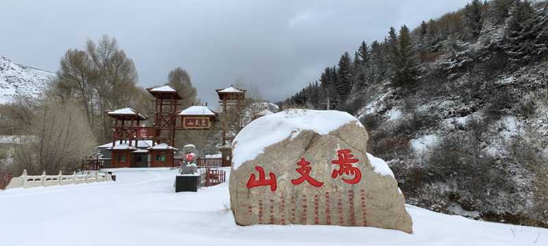 雪花纷纷,轻盈洒落,为焉支山披上了一袭素净白衣,尽显北国风光的静谧与诗意。