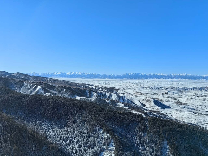 雪后的焉支山银装素裹,景色如画,美不胜收。