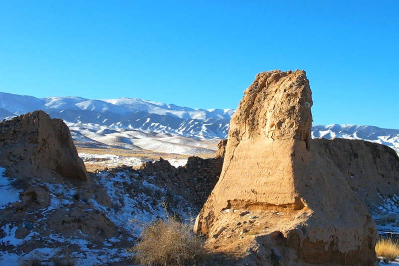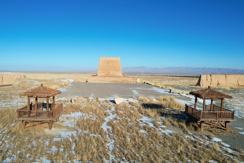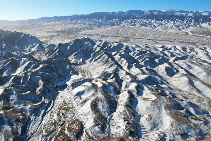 11月24日,新雪轻覆山丹硖口村,古堡残垣的苍赭裹上素白绒衣。