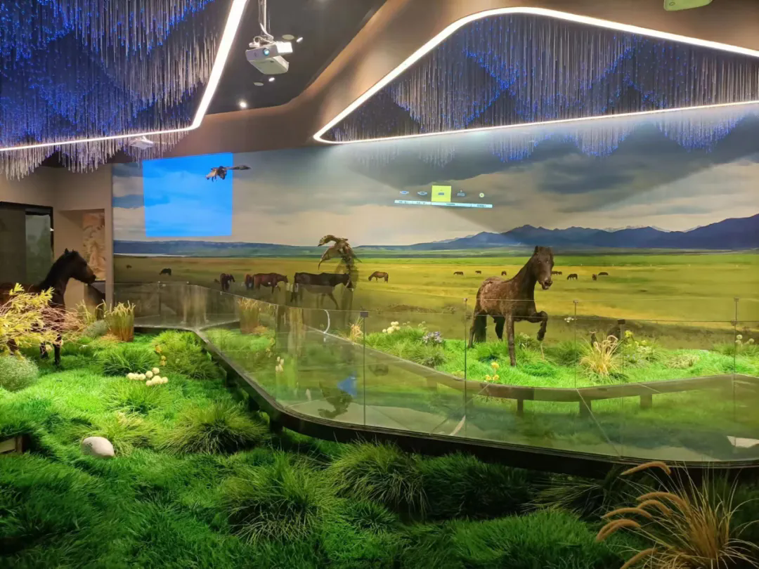 马文化博物馆是一个以展示山丹马文化为主旨的专题博物馆,布展设计注重传承山丹马2000多年来积淀在这片土地上的深厚文化底蕴,生动反映人与自然和谐相处美好结合的情景。充分展示山丹人民建设美好家园的干事创业精神。整个展馆围绕马场梦、军马魂、草原情三个单元,突出军马文化、丝路文化、长城文化,讲述霍去病征战河西史实与山丹皇家马场渊源、隋炀帝西巡史实与万国博览会渊源、山丹边塞军旅史实与民族融合发展渊源,展示山丹马在驯服、饲养、骑乘、劳作、运输、战争、通讯、科技等方面的文化内涵和积淀,同时展示山丹马在承载灿烂文明、传承历史文化、维系民族精神等方面的作用,弘扬刚健饱满、昂扬勃发、拼搏不息、负重担当、开放交流的精神文化内涵。