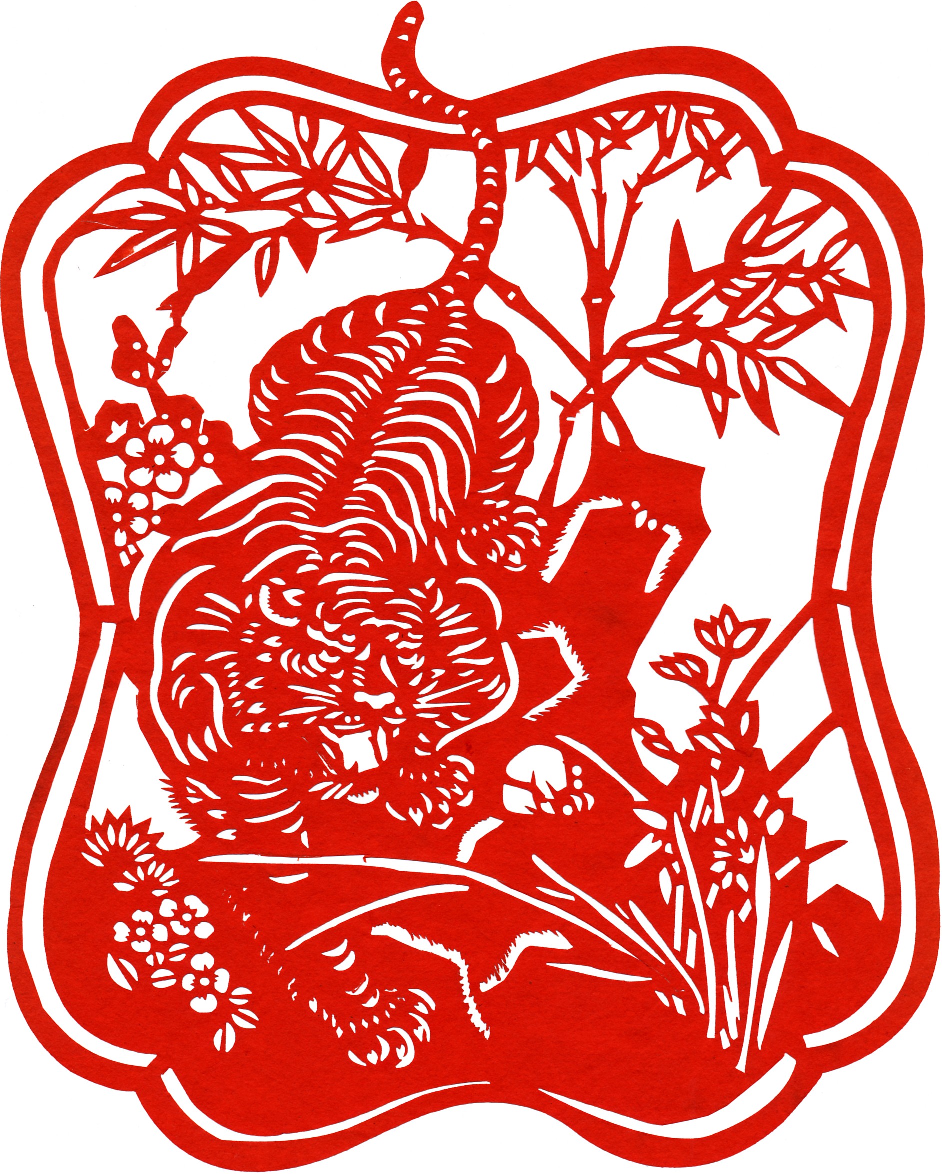 山丹民间剪纸题材广泛,内容丰富,花、鸟、虫、鱼、山水、动物、人物皆可入画,主要反映人们对吉祥如意、安康幸福的审美追求。刀法上有粗犷豪放,亦有精致细腻;表现手法上既有写实,更富有夸张。图案大多讲究工正、对称、连贯,各类造型准确生动。