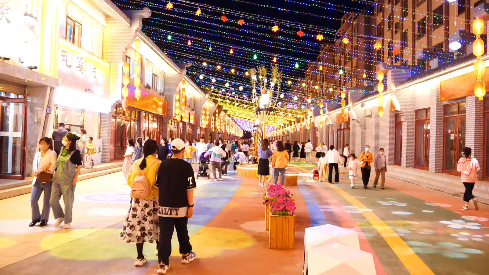 该街区突显了地方文化旅游特色,该街区紧邻的如意花海田园综合体,发挥了重要的观光旅游、美食品尝、市民休闲、健身娱乐等功能。先后投资1600多万元,以彩虹为主题,融入军马文化、长城文化等元素对街区整体进行提升改造,新建焉支巷子、大舞台、彩虹之门、向阳之路、彩光广场、景观座椅、标识标牌等设施,打造夜游灯光秀、七彩福树、天幕、山丹光印等“七彩融合夜景”,为游客提供全方位休闲娱乐生活场景。