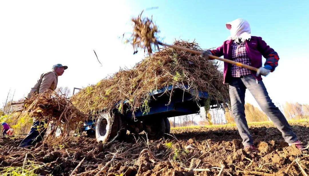 深秋时节,在山丹县大马营镇的田间地头上依旧一派热火朝天的景象。金灿灿的黄芪在秋风吹拂下,药香扑鼻而来,带着微微泥土的黄芪,在大型机械引擎的轰鸣声中,从土壤中翻出,工人们拿着钉耙忙着分拣、归拢、装运,勾勒出一幅生动的“药香富农图”。