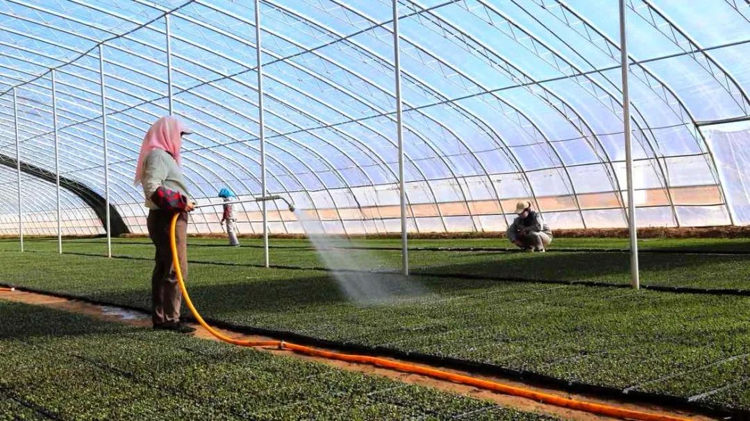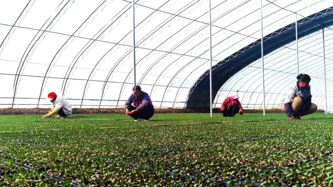 时下,正是春耕的黄金时期。走进山丹县陈户镇寺沟村的高标准育苗大棚,一股暖流如春风般扑面而来。目光所及之处,育苗床上的西蓝花幼苗早已迫不及待地破土而出,嫩绿的叶片在阳光的照耀下熠熠生辉。一盘盘育苗盘犹如严阵以待的士兵,整齐划一地排列着。10余名村民有条不紊地忙碌着,他们或专注于培育营养土,或细心地往穴盘中培土,或忙于给幼苗洒水、铺设保鲜膜。每一个动作都充满了对这片土地的热爱和对未来丰收的期盼。