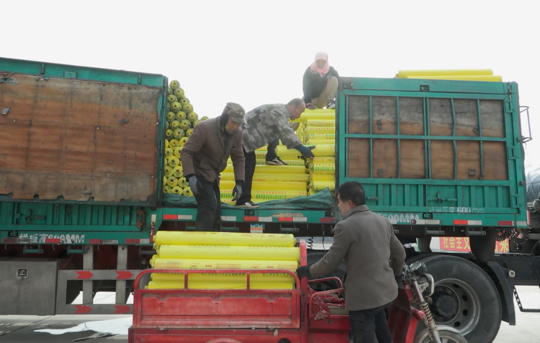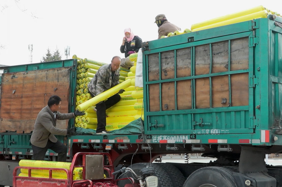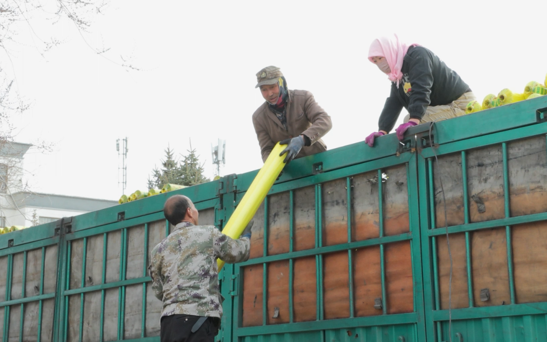 山丹县经济作物指导中心副主任 党兴平:今年依托地膜科学使用回收试点项目,投资1104万元,采购加厚高强度地膜487吨,全生物可降解地膜187吨。采取自购加补助的方式对全县的种植大户进行补助。目前,补助地膜正在有序发放中,预计3月底全部发放到位。推广加厚高强度和全生物可降解地膜这种农艺措施,一方面可以增加土壤的水分利用率,另一方面可以保温保湿,保墒防旱,在全县的抗旱节水过程中起到了巨大的作用。