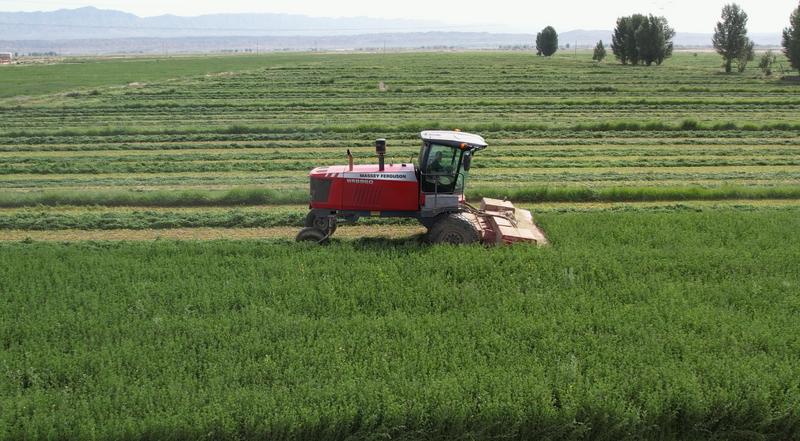 山丹:牧草之王开启收获季 机械化作业助农增收