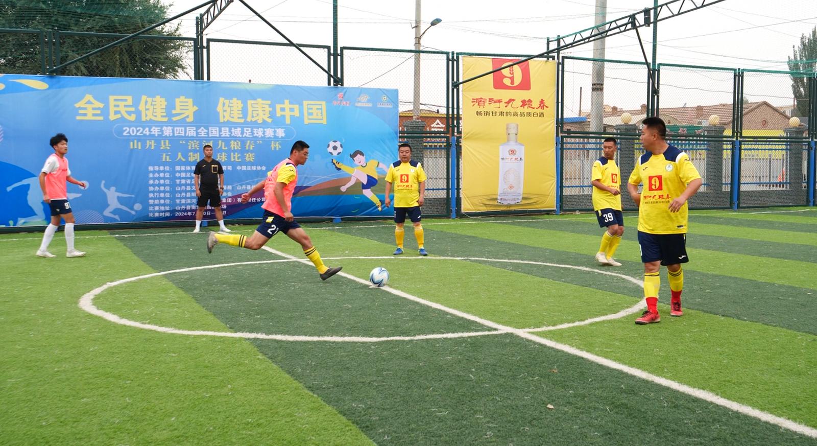7月20日,2024年第四届“全民健身 健康中国”全国县域足球赛事活动甘肃省山丹县“滨河九粮春”杯五人制足球比赛开赛。
