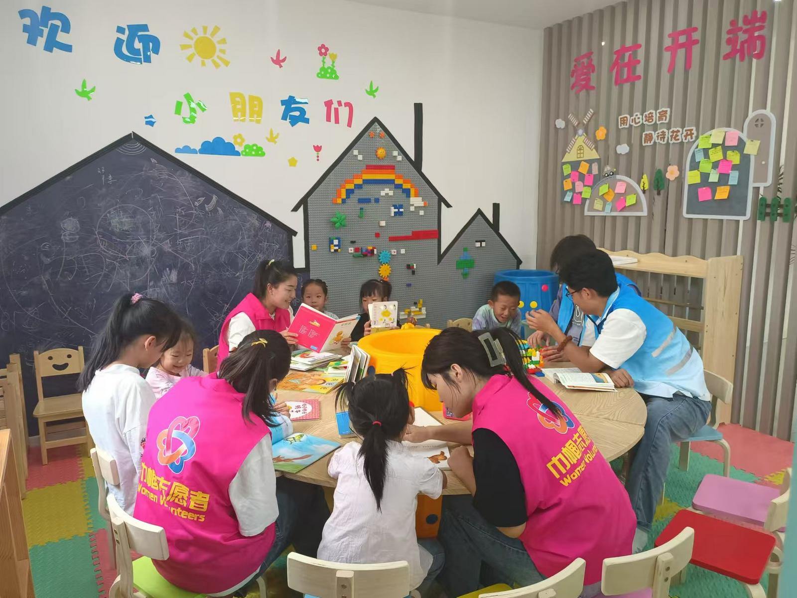 “今天天气真正好,乌龟乌龟起的早,跟着阿姨做游戏……”走进甘肃省张掖市山丹县清泉镇北街社区,志愿者们正和小朋友一起玩游戏、拼搭乐高、绘画,小朋友们在志愿者阿姨的陪同下玩得十分开心。