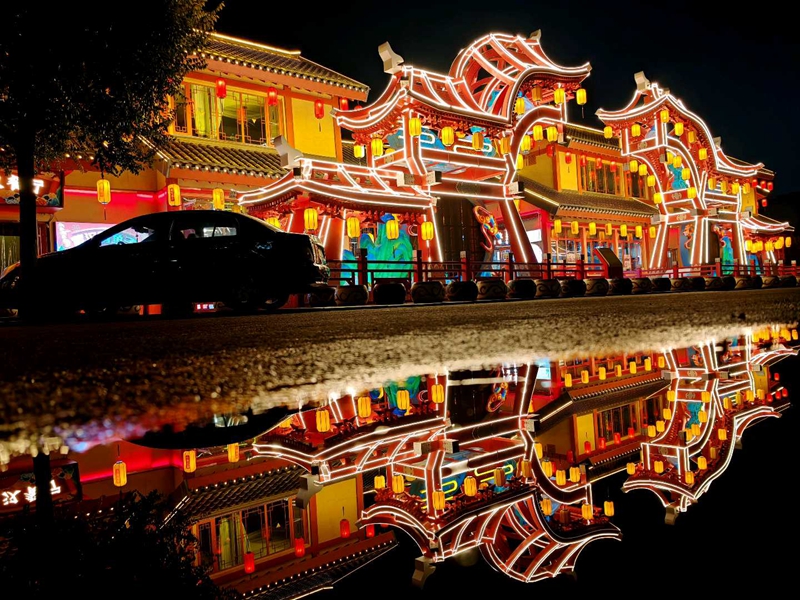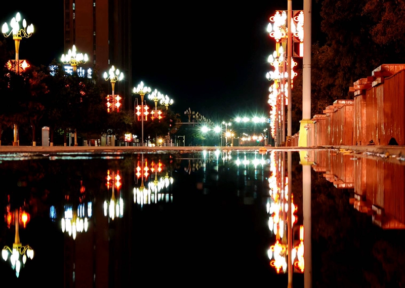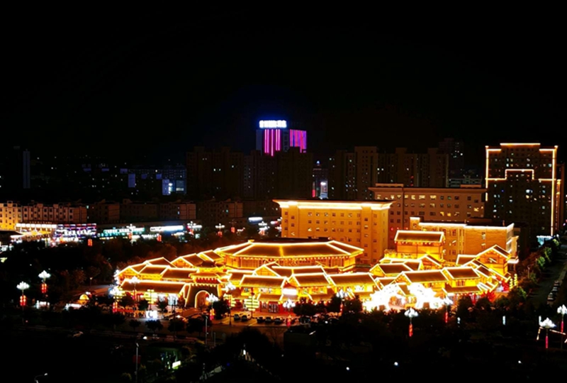 10月21日,夜幕降临,华灯初上,夜晚的山丹县城流光溢彩、美轮美奂。绚丽多彩的灯光点燃了城市的夜色,不仅照亮了小城的夜晚,更点亮了人们心中的温暖与热爱。(摄影 翟继宗)