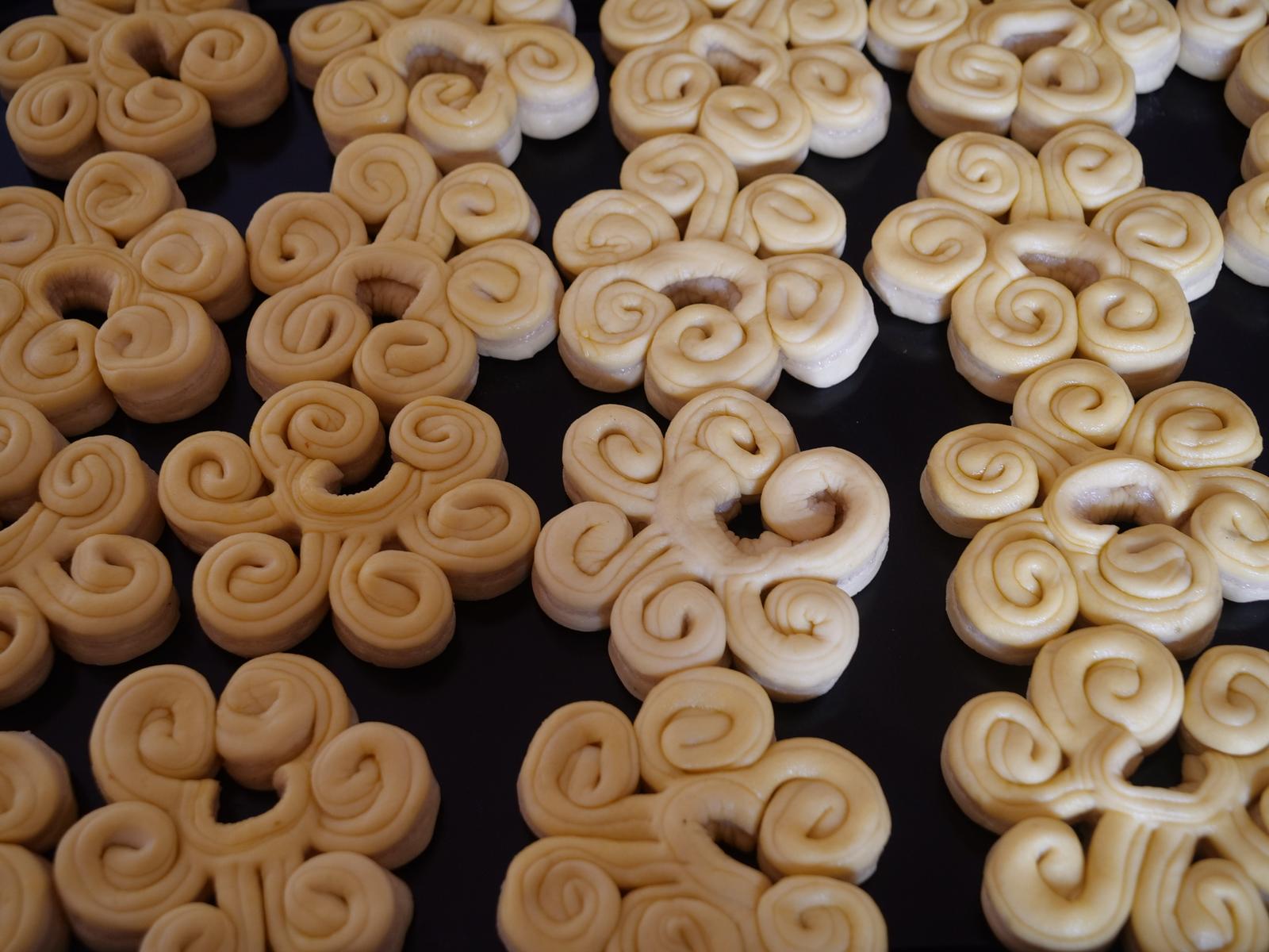 这天早晨,寺沟村的父老乡亲们起得很早,来到村委会生炉子、烧开水、揉面团,准备过年的家乡年味,开始制作山丹年馍馍。