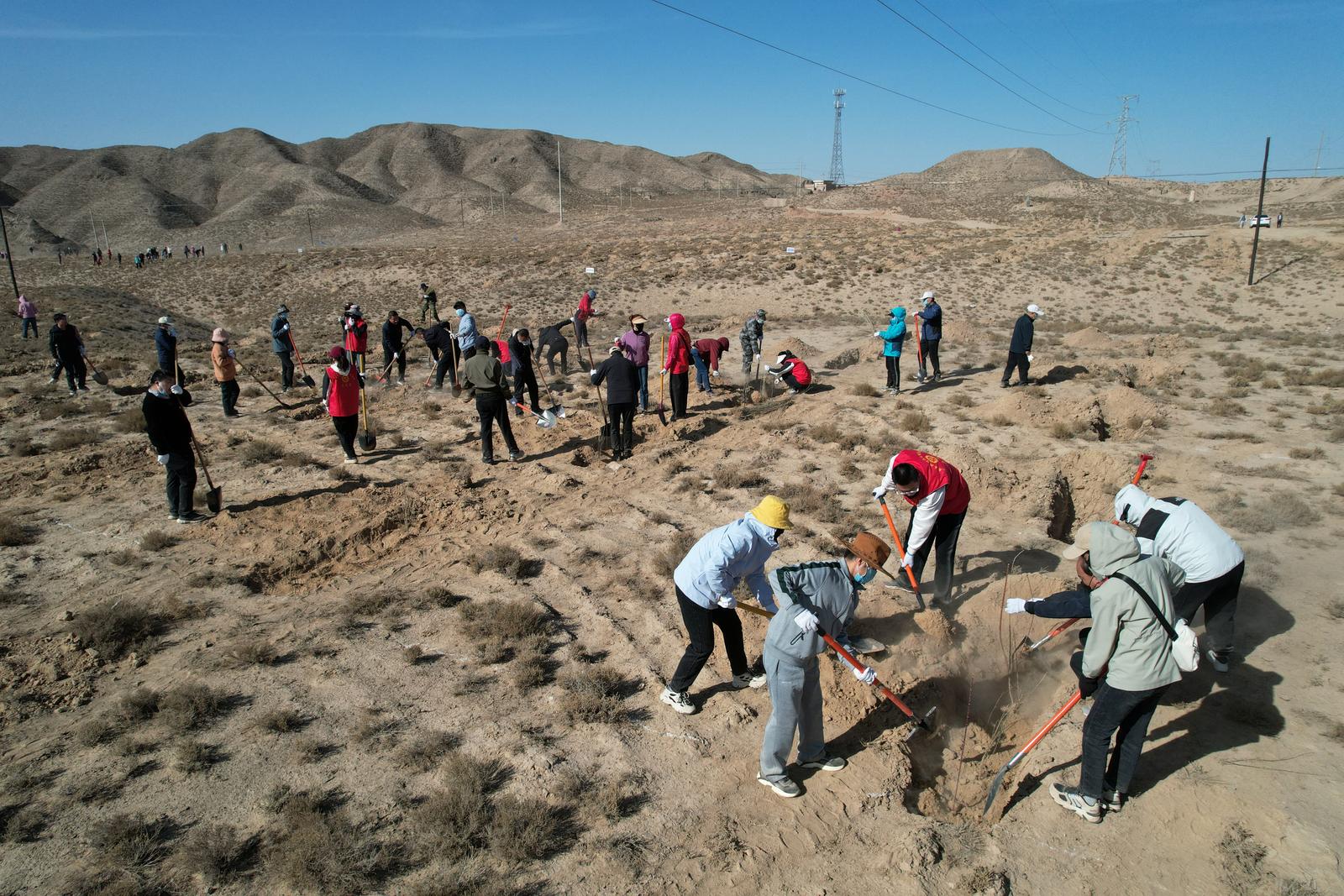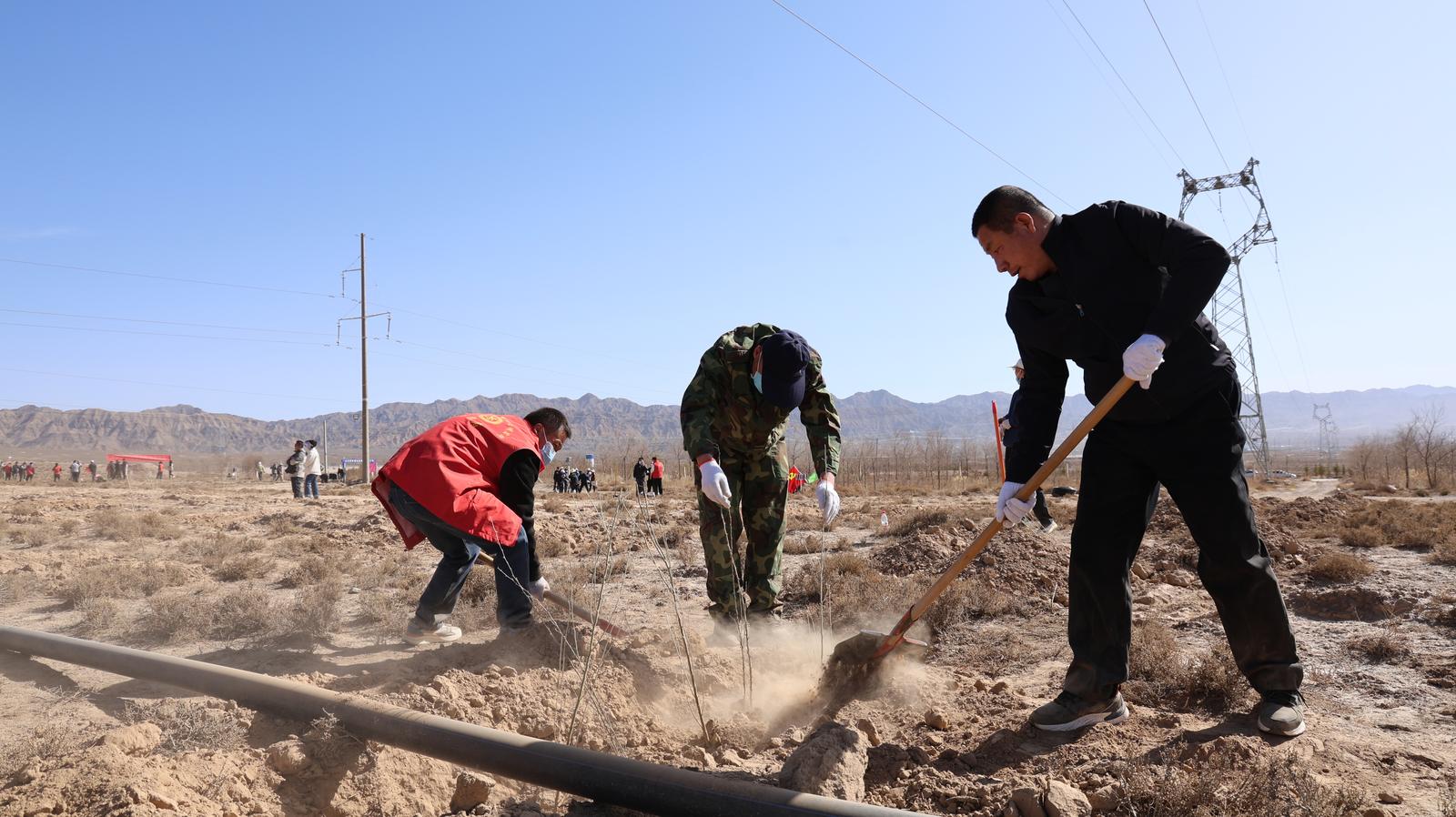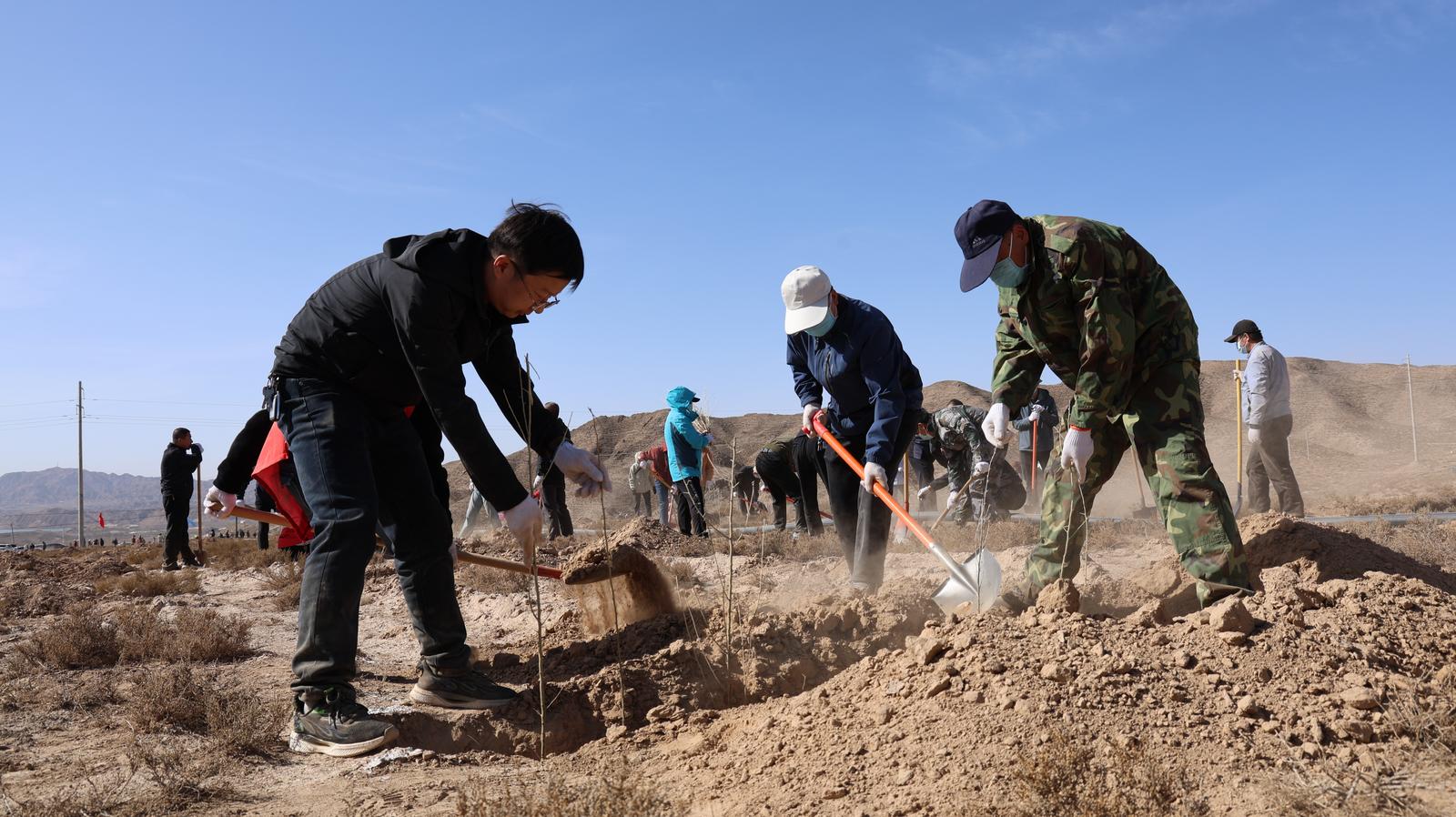 山丹县林业和草原局副局长 祁克博:栽植苗木以灌木为主,栽植四翅滨藜、柠条、红柳等11个树种25000株以上,通过义务植树进一步推动国土绿化,为全县生态文明建设再添新绿。