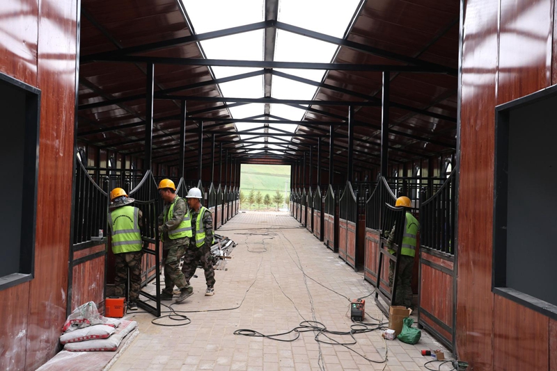 走进产业园,功能分区的细节正从蓝图走向现实。1100平方米的高标准马厩(40间)主体已竣工,正在进行内部装修;阿根廷纯血马、俄罗斯奥尔洛夫、阿拉伯马、汗血马、盎格鲁马等5个品种的320匹良种马已“蓄势待发”,静待新舍启用。