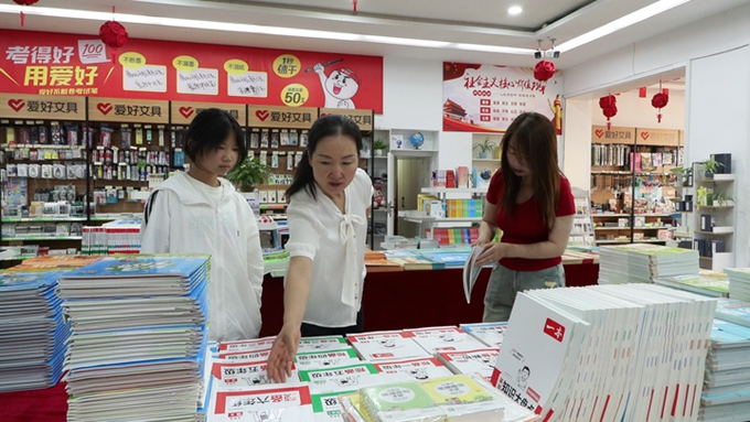 山丹县新华书店同样人气旺盛。教辅专区前,家长带着孩子认真挑选;社科展柜旁,青少年在经典书籍前驻足。门店经理高惠在介绍暑期安排时提到,客流高峰时段书店会适当延长营业至晚上8点半或9点。“所有教辅图书八折,其他类图书也有七折、六折甚至五折优惠。我们还定期举办DIY手工、朗读者、绘本故事等活动。”高惠说,“特色文创产品如钢笔、橡皮、小风扇、拼图等也很受欢迎。各年级暑假作业供应充足。”