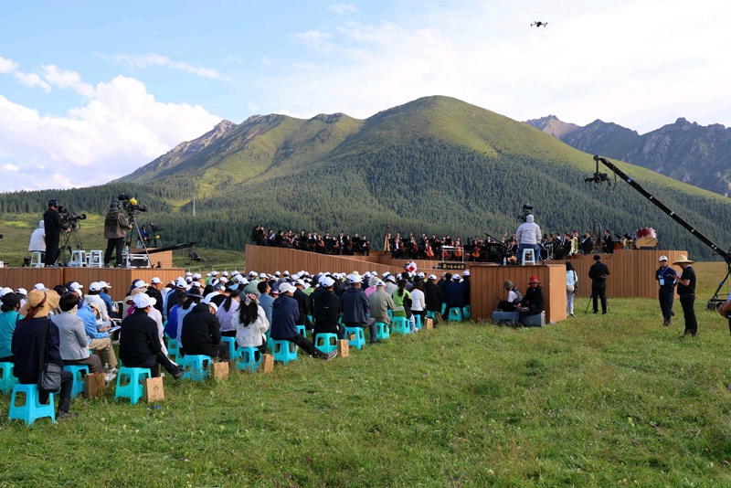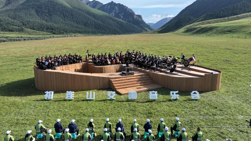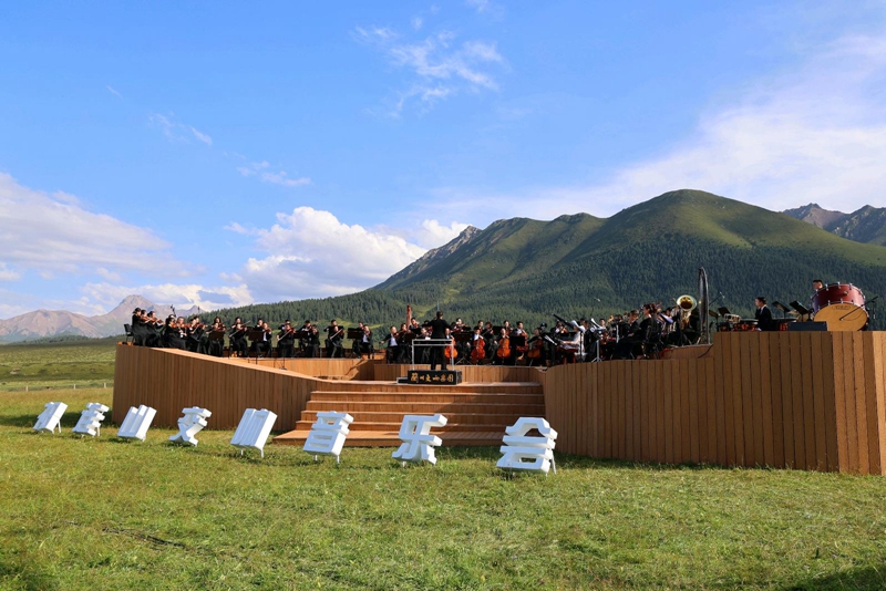 中国交响乐团常任指挥 景焕:我们以祁连山美丽的祁连山为背景,天为幕、地为台,是非常难得的体验。所有的演职人员在这样的环境当中,有种天人合一的感觉。希望我们所有的观众、朋友们能来到祁连山,现场体会这种非常震撼的感觉。