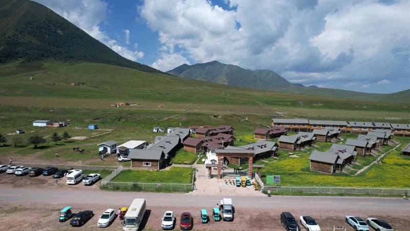 在历史悠久的山丹马场,辽阔的绿意铺展至天际。这里,传统的马背文化焕发新活力:游客或策马扬鞭,感受驰骋豪情;或由牧民牵马缓行,悠然欣赏草原画卷。为丰富游客体验,马场积极完善服务设施,新增了电动摩托车和小型观光车租赁服务。游客扫码自驾,穿行于草原小径,随时驻足拍摄成群的骏马或金灿灿的油菜花海。印有“山丹文旅”标识的观光大巴沿固定线路行驶,方便游客捕捉远处马群奔腾的壮观景象。