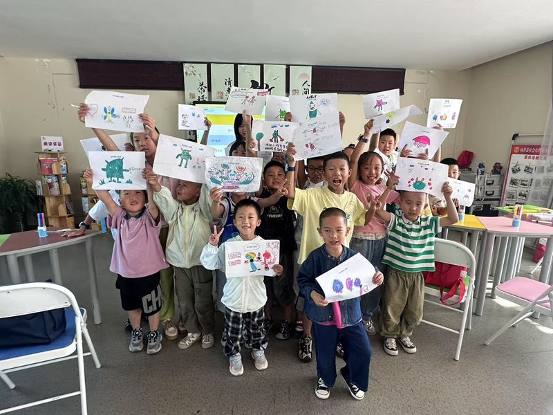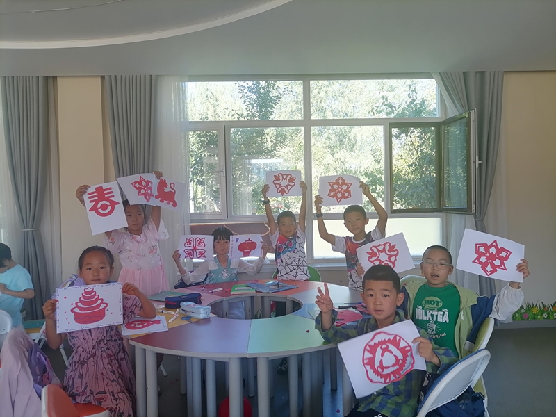 特色课程如同彩虹般铺满孩子们的暑期:手工、绘画课收获120余件童趣作品,科普小实验让45名孩子迷上科学探索,经典诵读会吸引30个家庭共同参与。新城社区特别邀请非遗传承人开设剪纸、吹糖人课程,孩子们用稚嫩的小手剪出蝴蝶翅膀,在糖浆的甜香中感受传统文化魅力,这些作品整齐陈列在“成果展示角”,见证着孩子们的成长足迹。