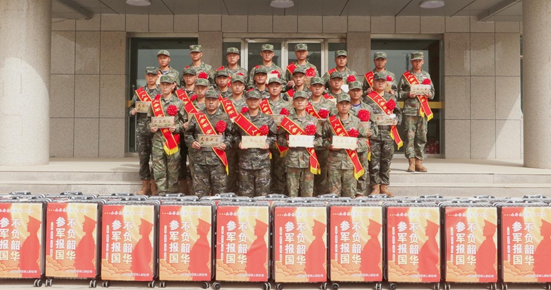 活动现场,优秀青年们身着崭新军装、胸戴大红花,精神抖擞地站成整齐的队列,目光坚定地注视着前方。县退役军人事务局向入伍新兵赠送了行李箱,发放了“光荣之家”荣誉牌,并在之后的座谈会上对光荣入伍的新兵们表示热烈祝贺,提出殷切嘱托。新兵们纷纷表示,将在军营中牢记嘱托、苦练本领,早日成为合格的新时代优秀军人。